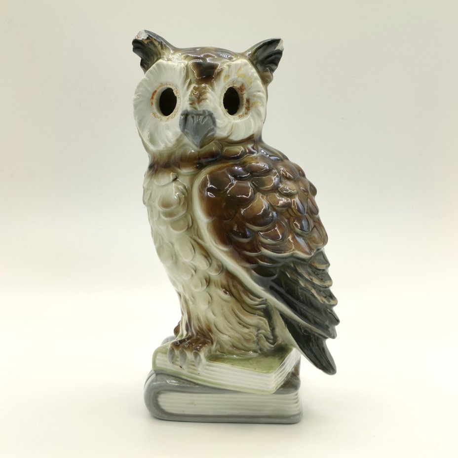 Ночник (лампа) "Сова на книгах", фарфор, роспись, металл, полимерный материал, Heinz & Co., Германия, 1954-1972 гг.
