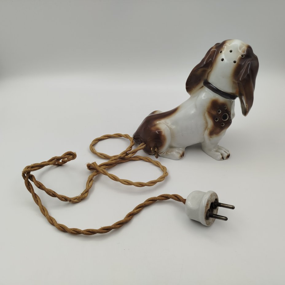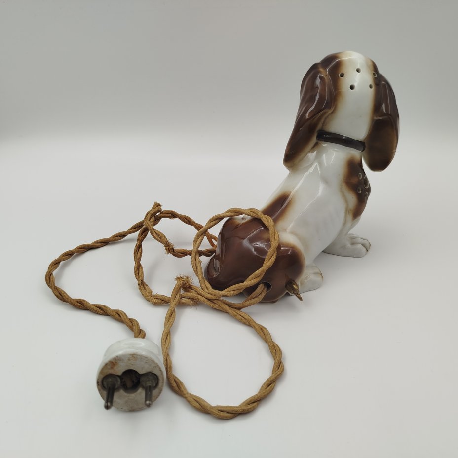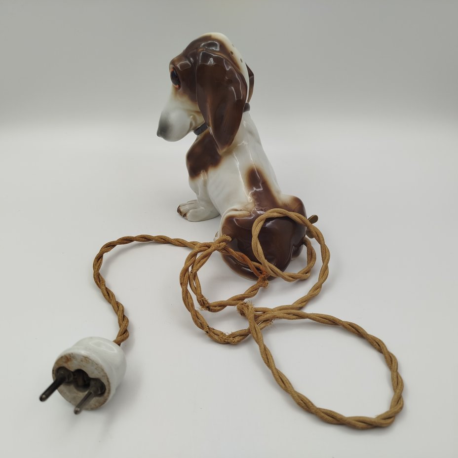 Лампа-ночник (винтаж) "Такса", фарфор, роспись, полимерный материал, Германия, 1950-1970 гг.