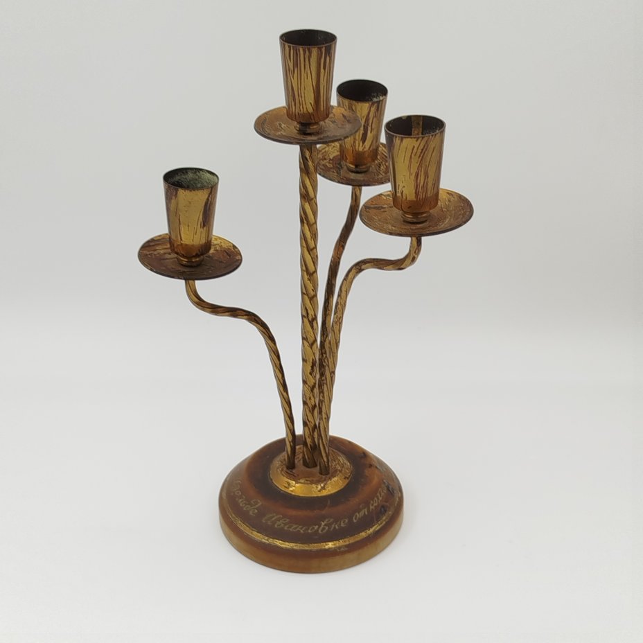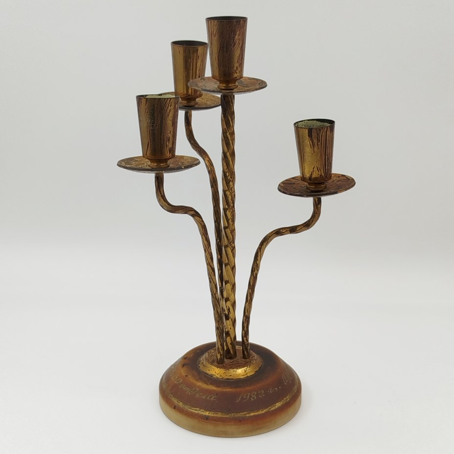 Подсвечник на 4 свечи (с дарственной надписью), металл, СССР, 1982 г.