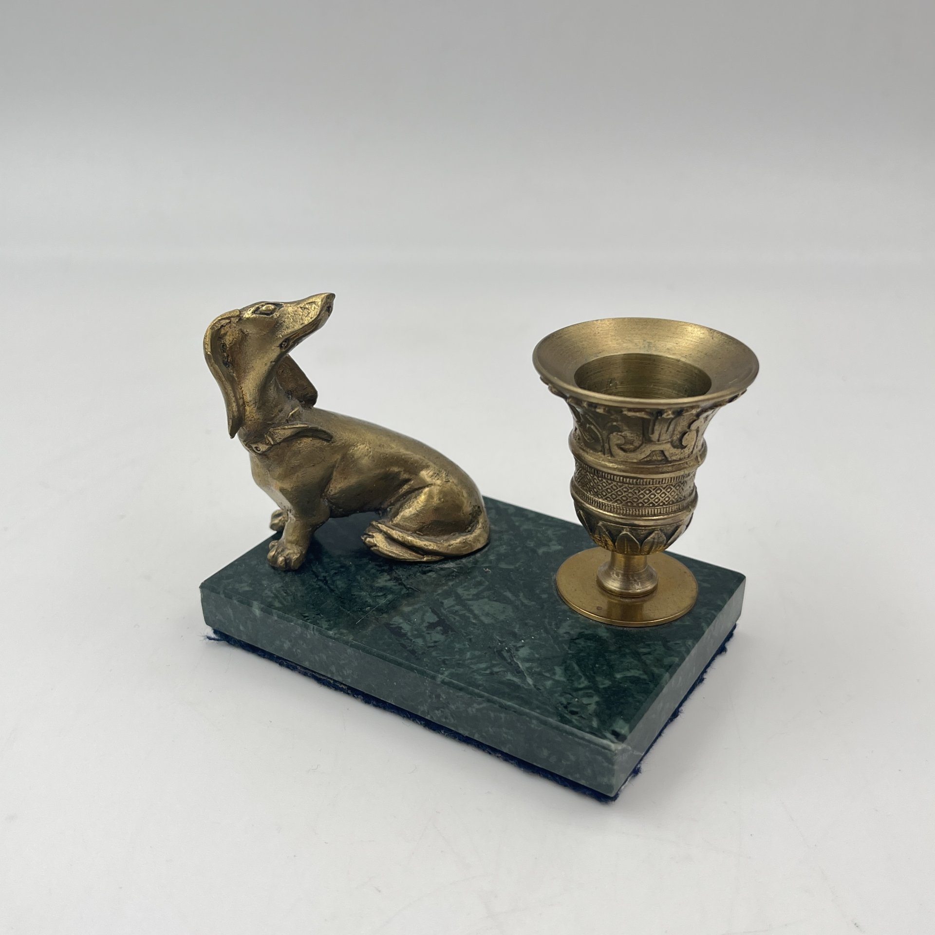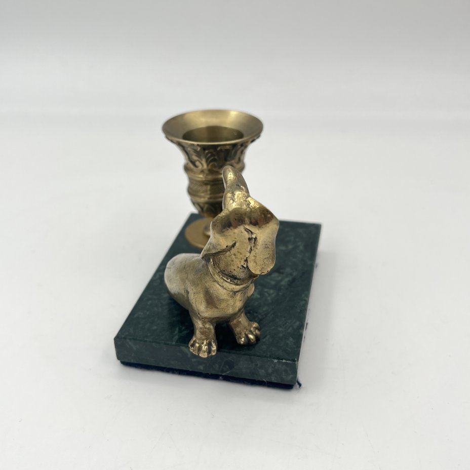 купить Подсвечник настольный "Такса" (на одну свечу), латунь, змеевик, Российская Федерация, 2000-2020 гг.