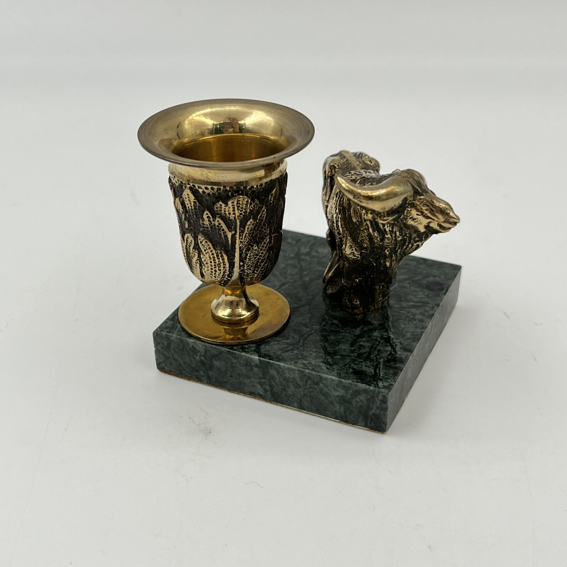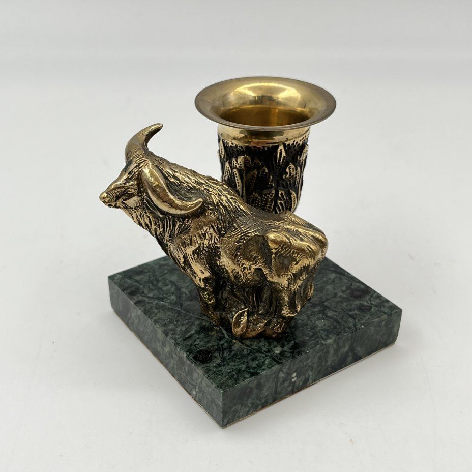 купить Подсвечник настольный "Бык" (на одну свечу), латунь, змеевик, Российская Федерация, 2000-2020 гг.