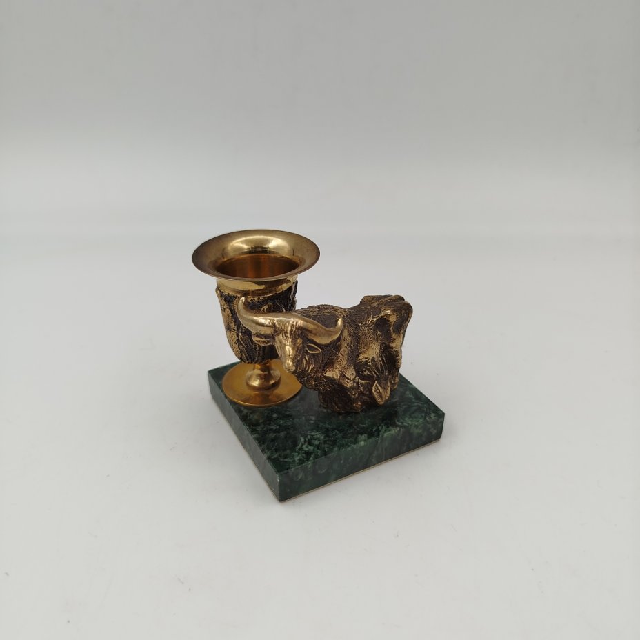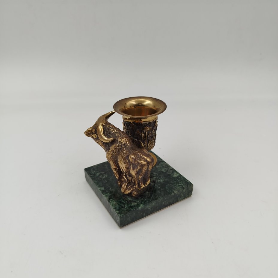 купить Подсвечник настольный "Бык" (на одну свечу), латунь, змеевик, Российская Федерация, 2000-2020 гг.