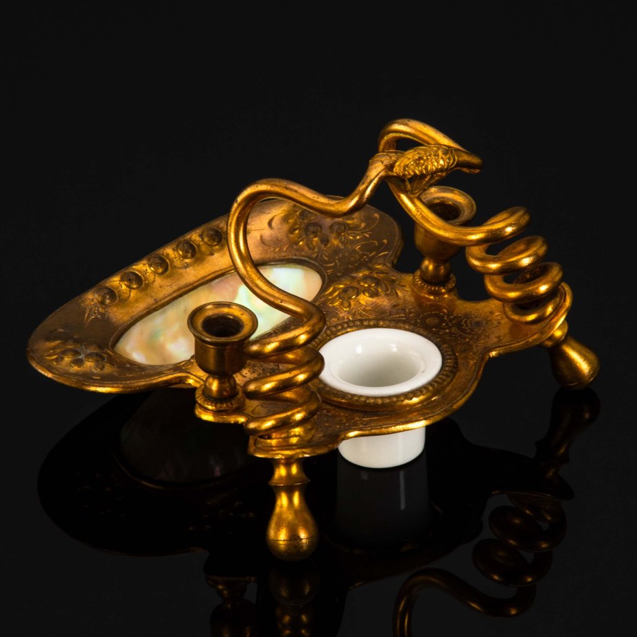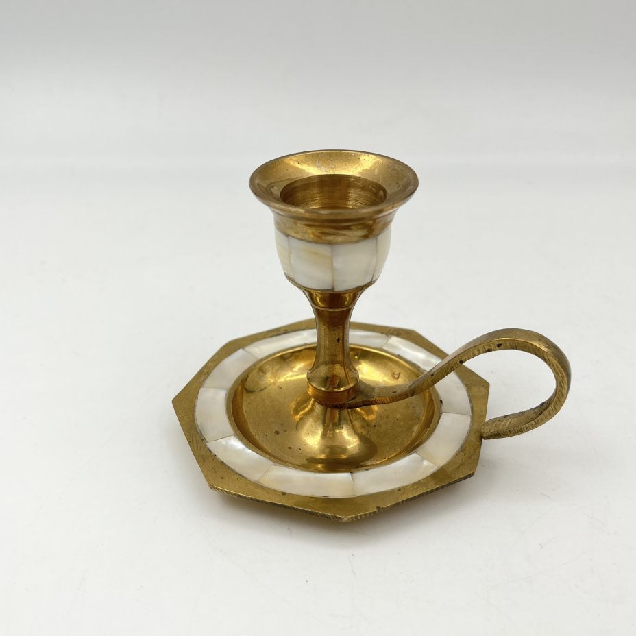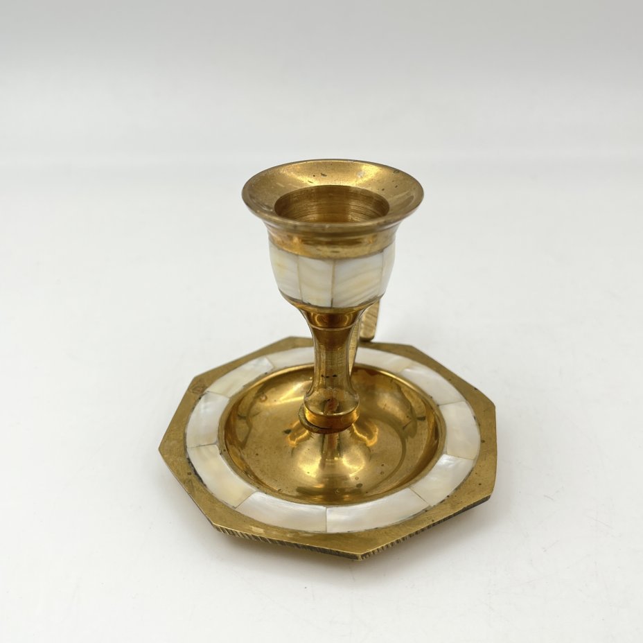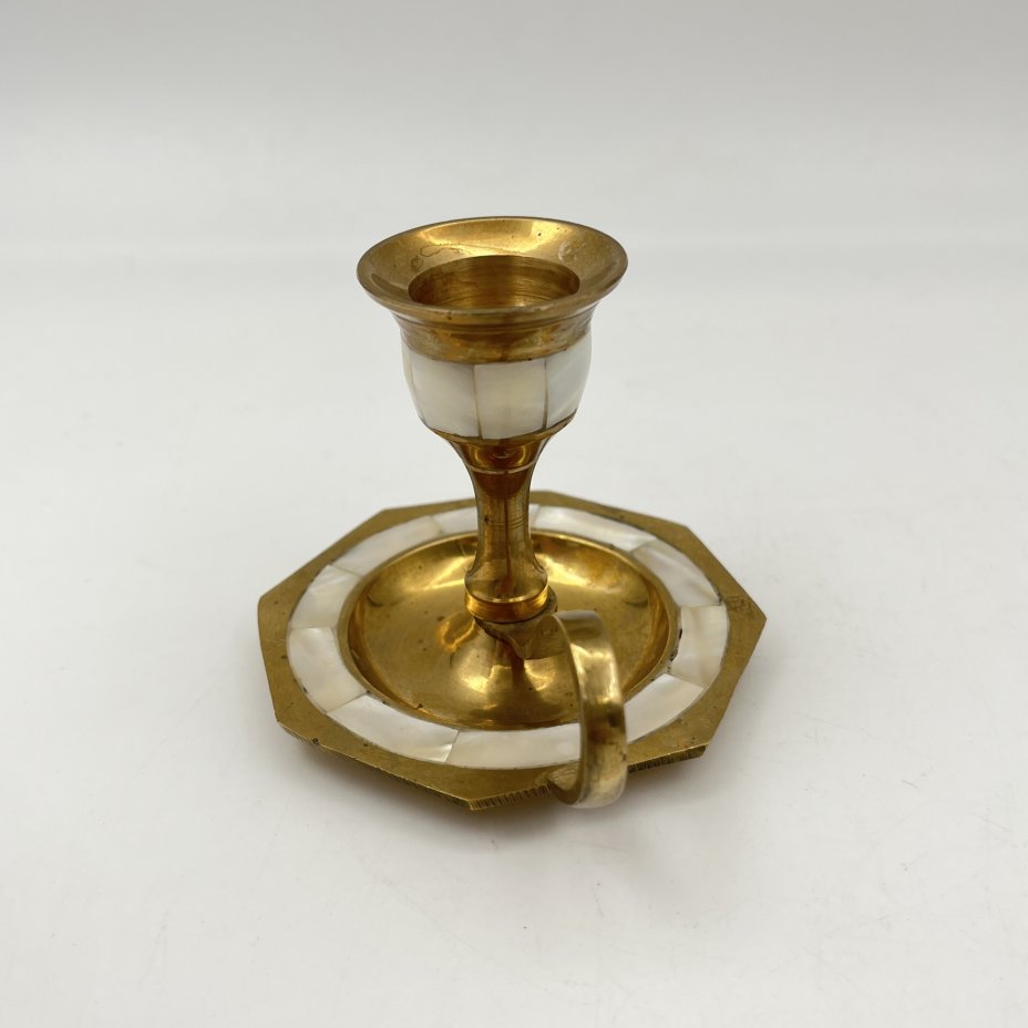 Подсвечник переносной на одну свечу, украшенный перламутровыми вставками, латунь, перламутр, Индия, 1970-1990 гг.