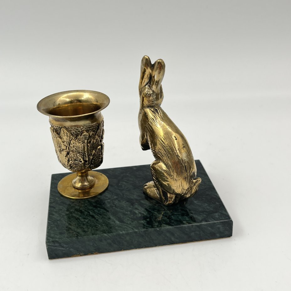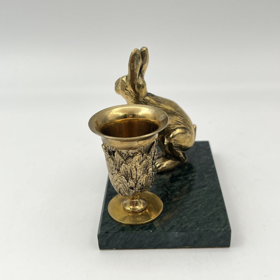 Подсвечник настольный "Заяц" (на одну свечу), латунь, змеевик, Российская Федерация, 2000-2020 гг.