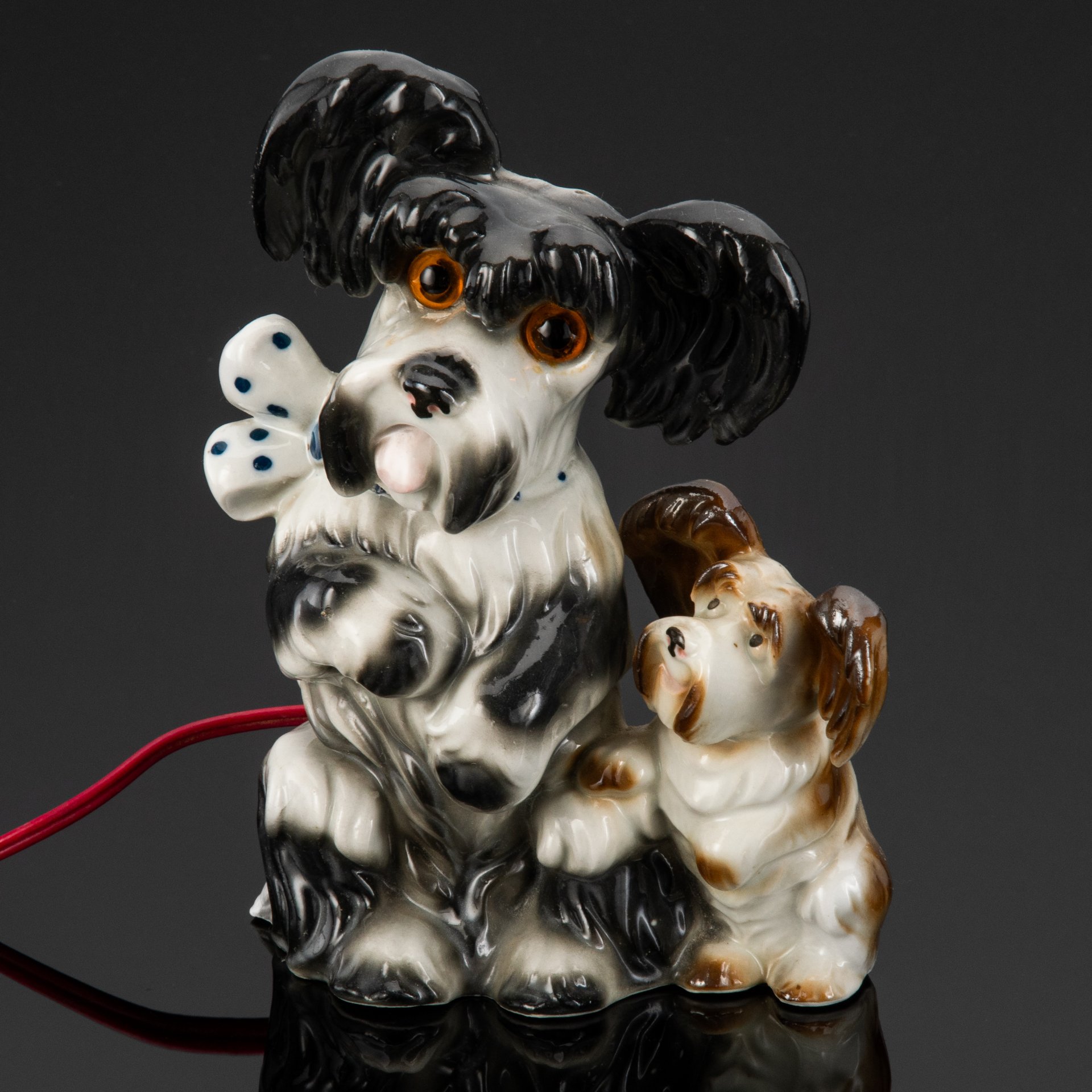 купить Светильник-ночник "Два терьера", фарфор, роспись, композитный материал, Германия, 1950-1980 гг.