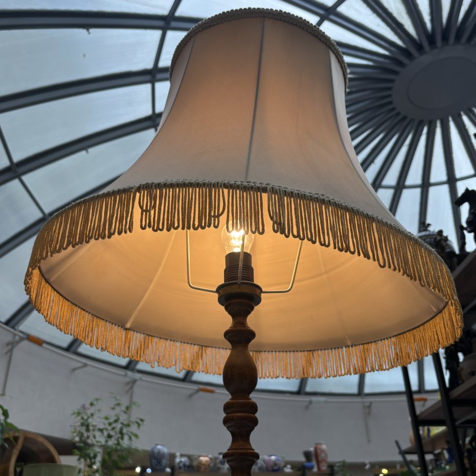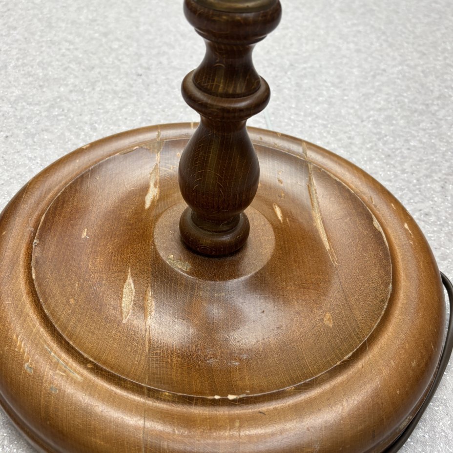 Торшер на фигурном точенном основании (винтаж), дерево, ткань, полимерный материал, СССР, 1980-1990 гг.