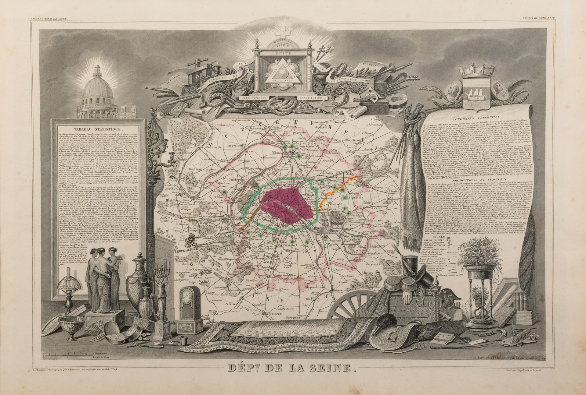 Карты Левассера отличаются широкими декоративными полями, содержащими детальные изображения пейзажей, народов и товаров изучаемых территорий. Эти карты также известны тем, что содержат обширный статистический материал.