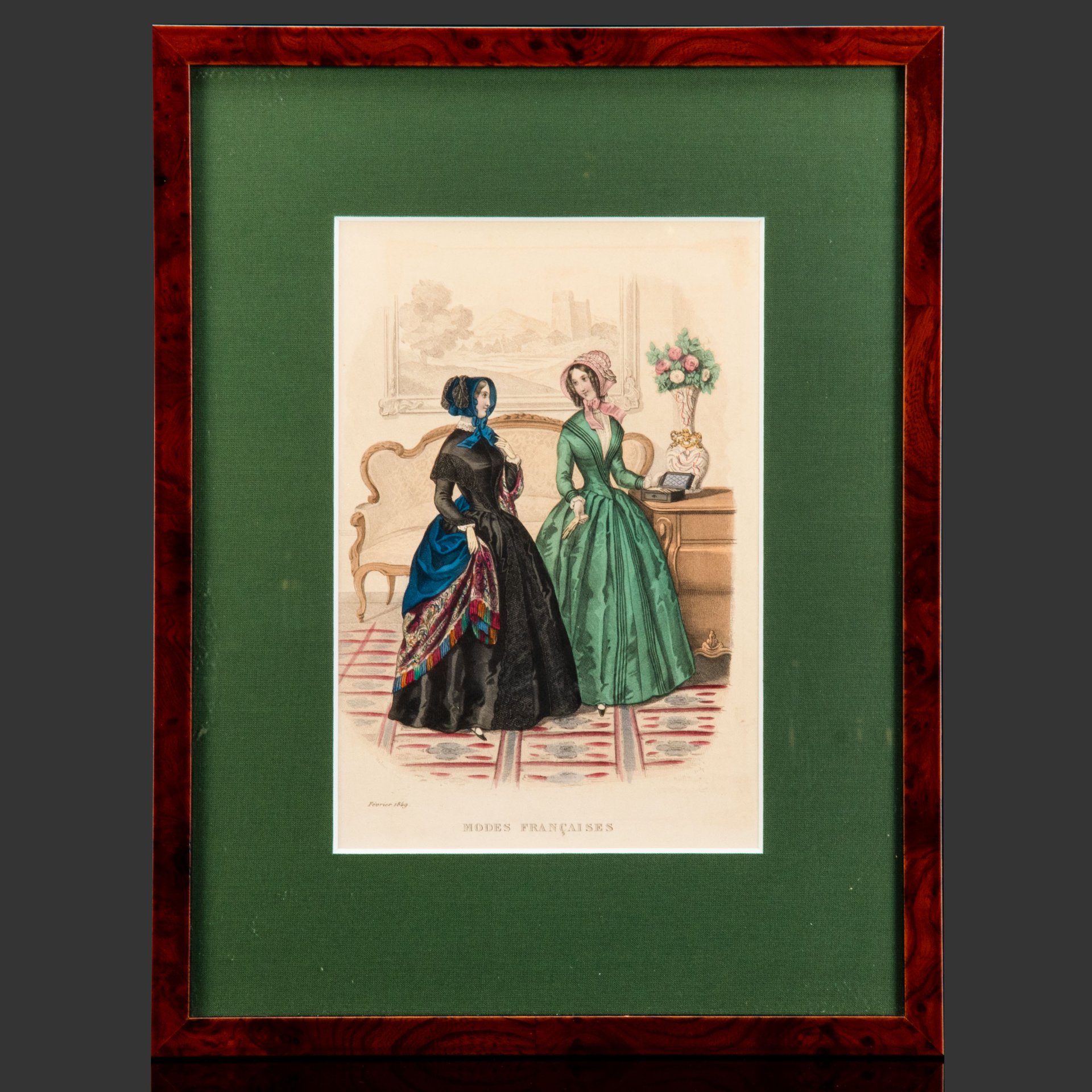 Гравюра с картины Яна Винантса "Утро" ("Сельский пейзаж") в паспарту и застеклённой раме, бумага, печать (гравюра на металле), картон, багет, Западная Европа, 1880-1920 гг.