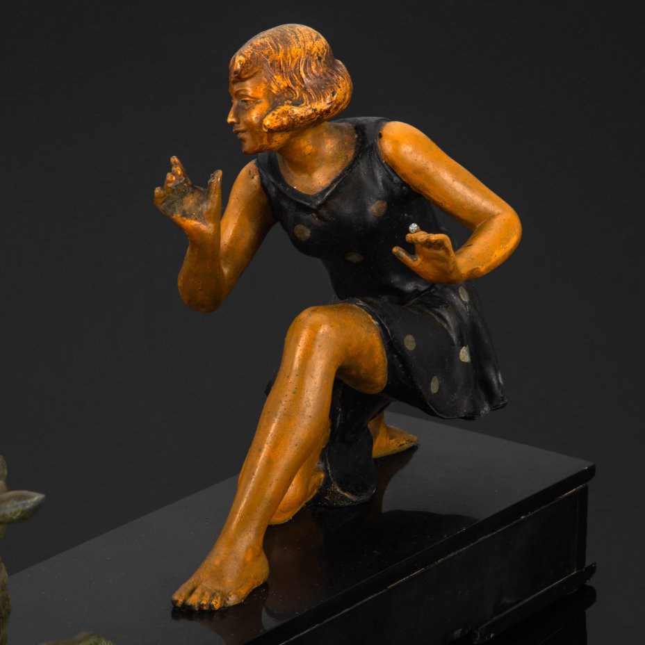 Скульптура "Девушка с мячом", по модели французского скульптора Adolphe Jean Lavergne (подпись на постаменте J. Lavergne), металл, литье, бронзирование, Западная Европа, 1900-1930 гг.