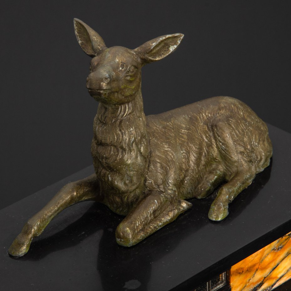 Скульптурная композиция в стиле ар-деко "Девушка с олененком" на мраморном постаменте, металл, крашение, мрамор, стекло, Западная Европа, 1920-1930 гг.