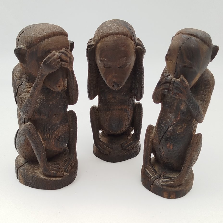 Скульптурная композиция "Обезьяны мудрости" ("Не вижу, не слышу, не говорю"), дерево, резьба, Африка, 1970-1990 гг.