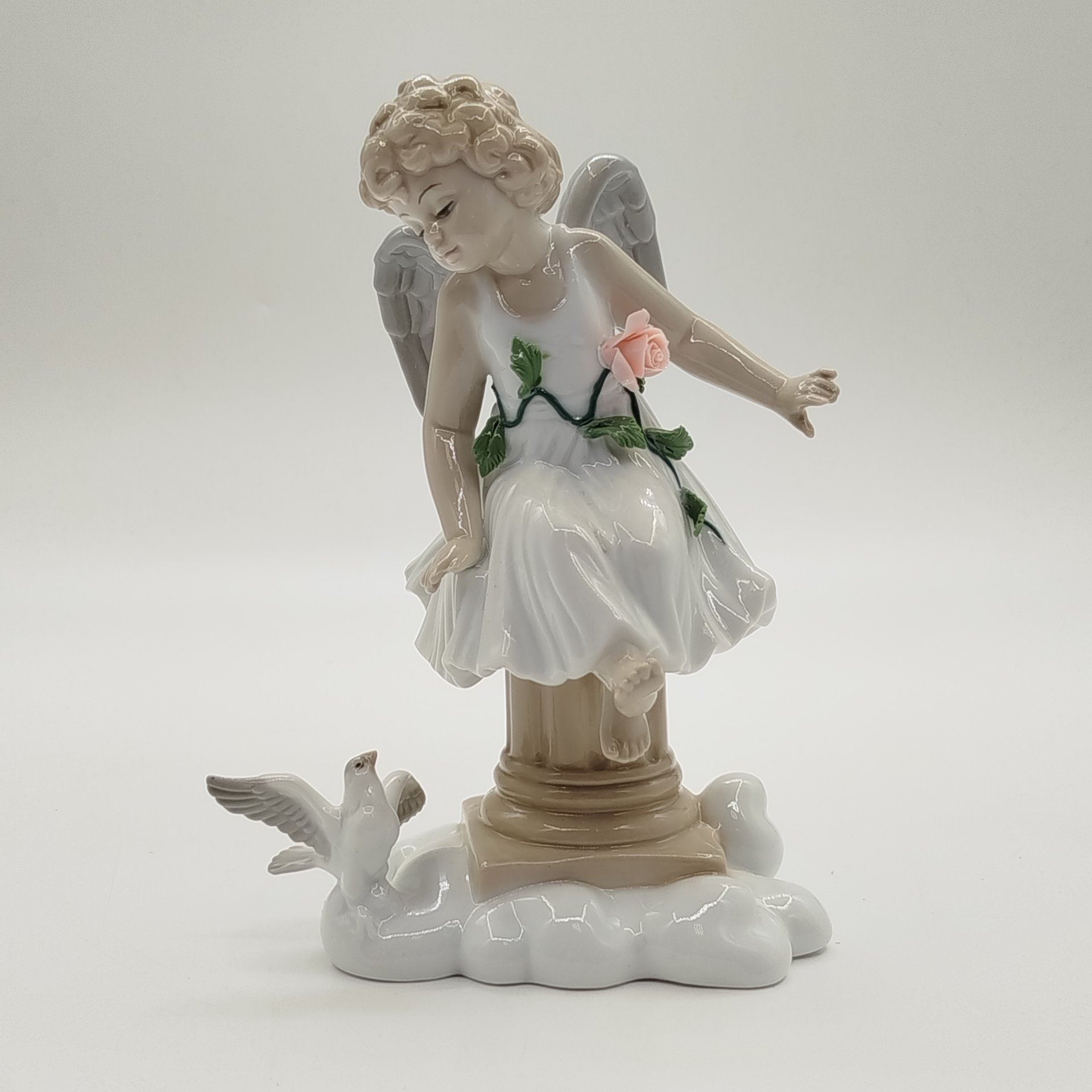 Статуэтка "Дама с цветком и зеркалом", фарфор, кружевной фарфор, роспись, золочение, Западная Европа, 1960-1980 гг.