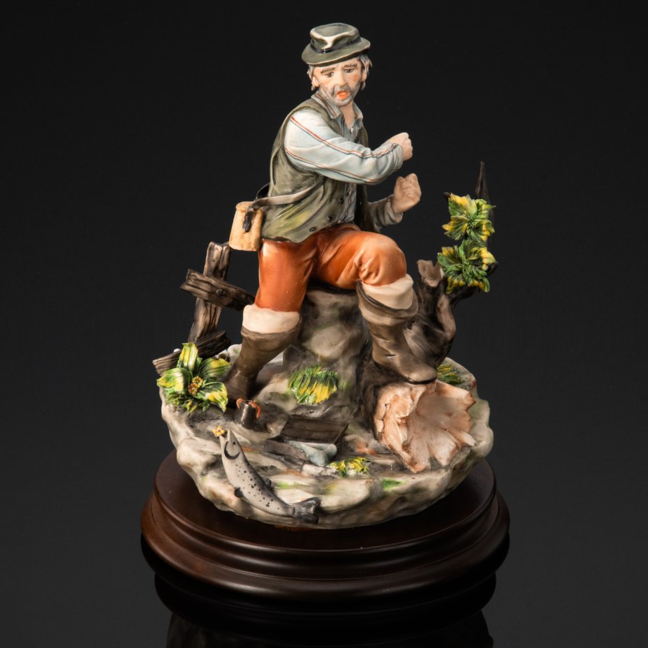 Статуэтка на постаменте "Мальчик с гусем", бисквит, лепка, роспись, золочение, Capodimonte (Каподимонте), Италия, 1970-1990 гг.