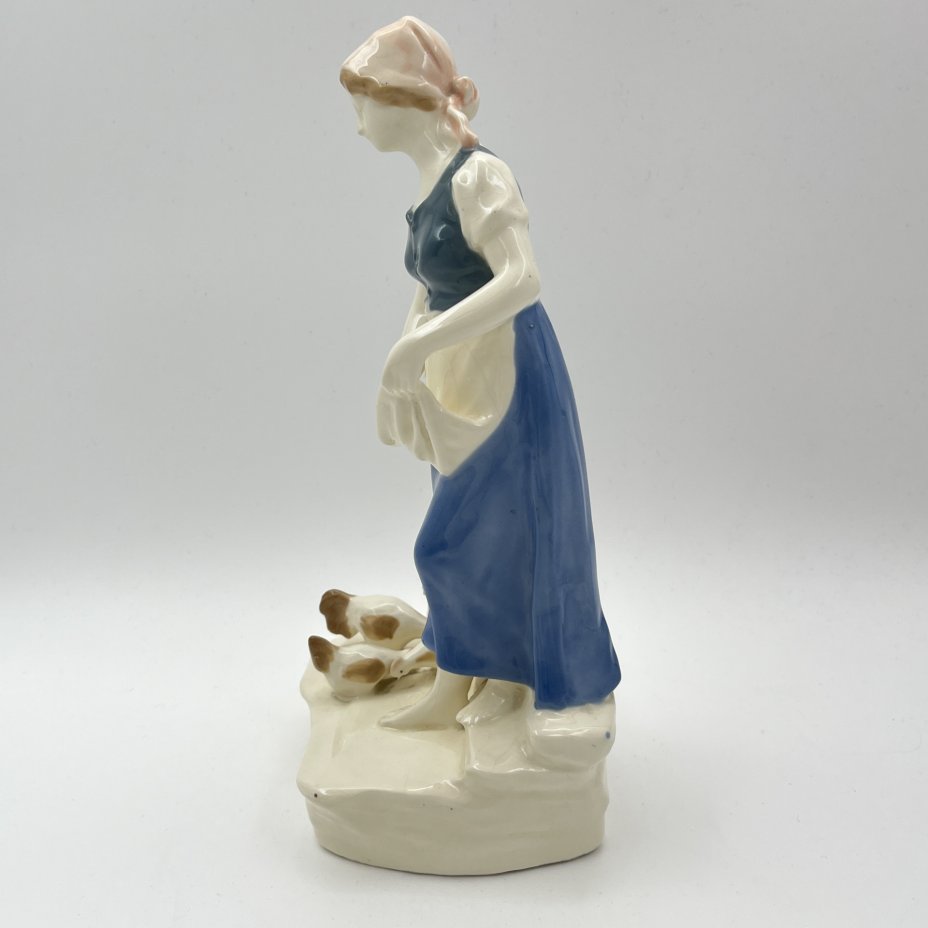 Статуэтка "Девушка, кормящая кур", фаянс, роспись, Западная Европа, 1950-1970 гг.