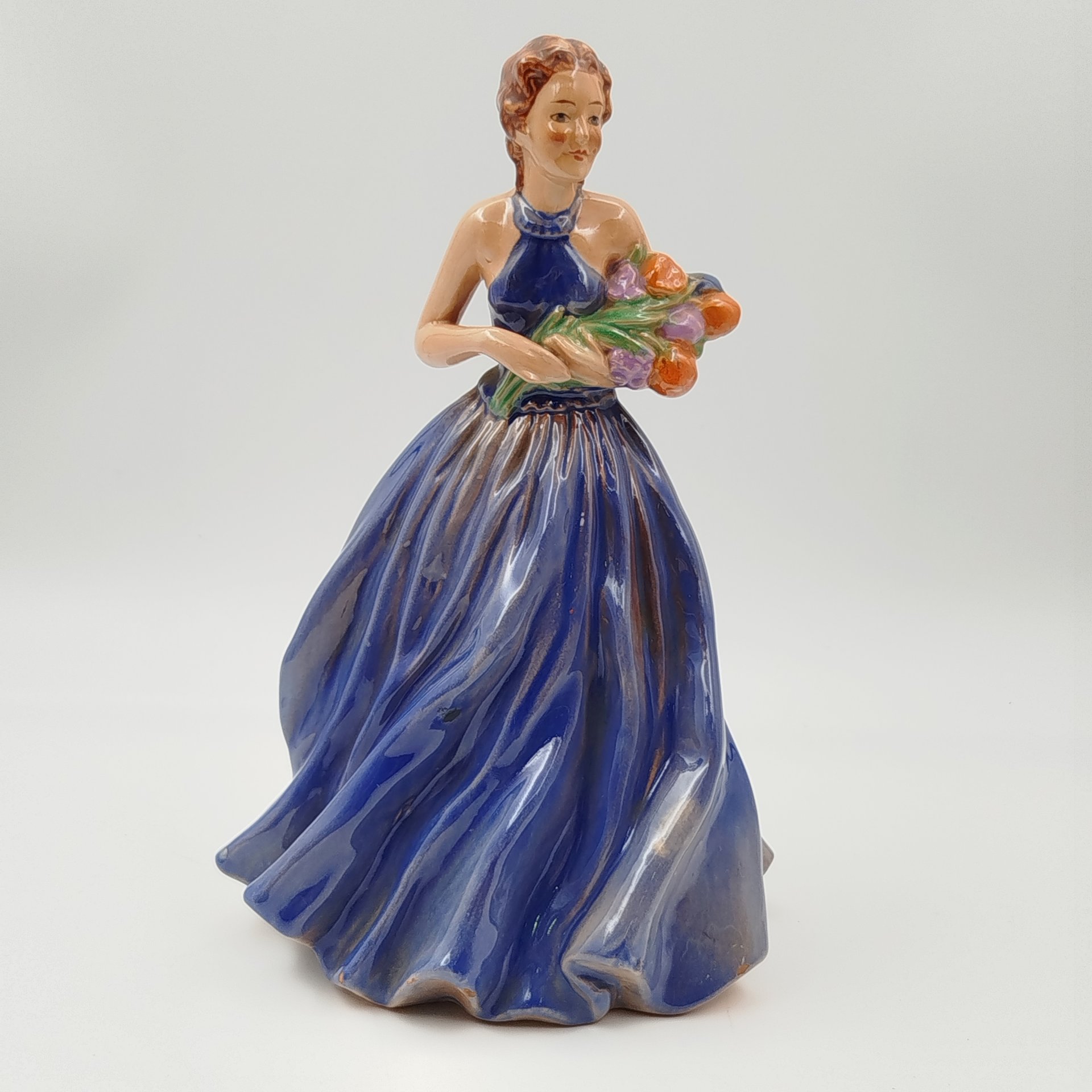 Статуэтка "Девушка в синем платье с букетом цвете", керамика, роспись, Европа, 2000-2010 гг.