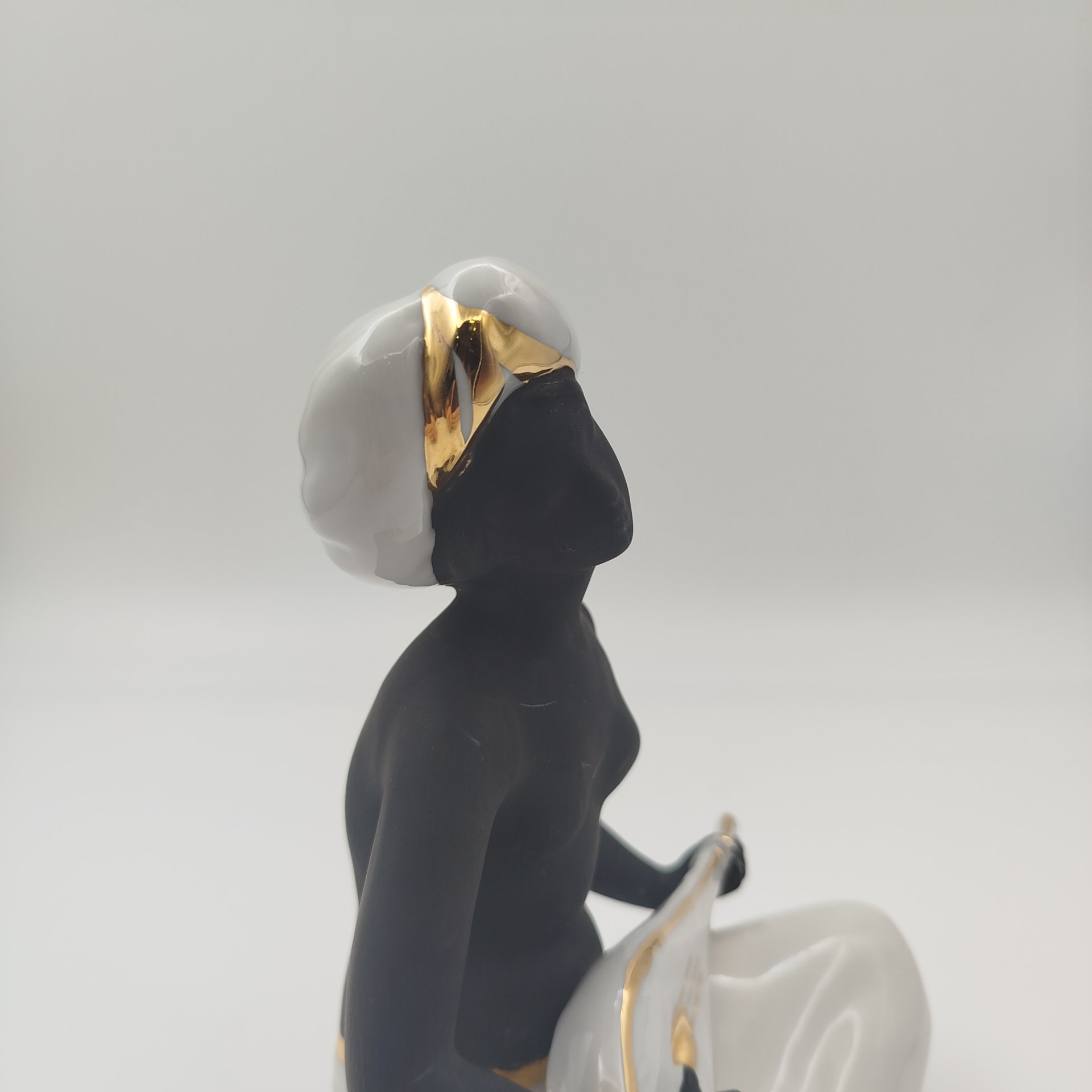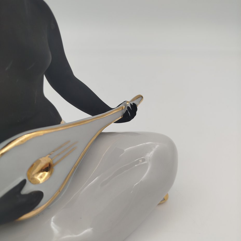 Крупнейшее на сегодняшний день предприятие по производству посуды, изделий из фарфора и фаянса было создано в 1832 году в деревне Дулёво Московской губернии. В 1918 году завод Дулёво был национализирован, как и другие российские фарфоровые заводы. Если многие фабрики после национализации постепенно пришли в упадок, то Дулёвский завод стремительно развивался. На предприятии появилась собственная художественная лаборатория, цеха усовершенствовали, а количество изделий из фарфора и фаянса увеличили втрое по сравнению с началом 20 века. Основными критериями успеха завода были: особая прочность изделий, постоянное внедрение передовых технологий и широкий ассортимент выпускаемой продукции, доступный для разных слоев населения. Автор статуэтки - выдающаяся Астра Давыдовна Бржезицкая, советский скульптор, с 1945 года работала на Дулевском фарфоровом заводе. Активно участвовала в советских и зарубежных выставках (Всемирная выставка в Брюсселе – 1958 г.; Международные выставки керамики в Остенде – 1959 г. и Праге – 1962 г.). Работы находятся в ГТГ, ГРМ, Музее керамики "Усадьба Кусково XVIII в", Всероссийском музее декоративно-прикладного и народного искусства, во многих региональных музеях, а также в частных коллекциях России и за рубежом.