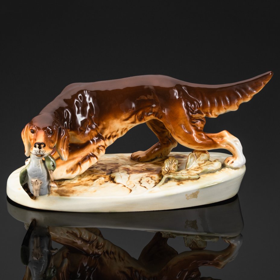 купить Статуэтка "Собака с дичью" ("Сеттер с уткой"), фаянс, роспись, Западная Европа, 1960-1990 гг.