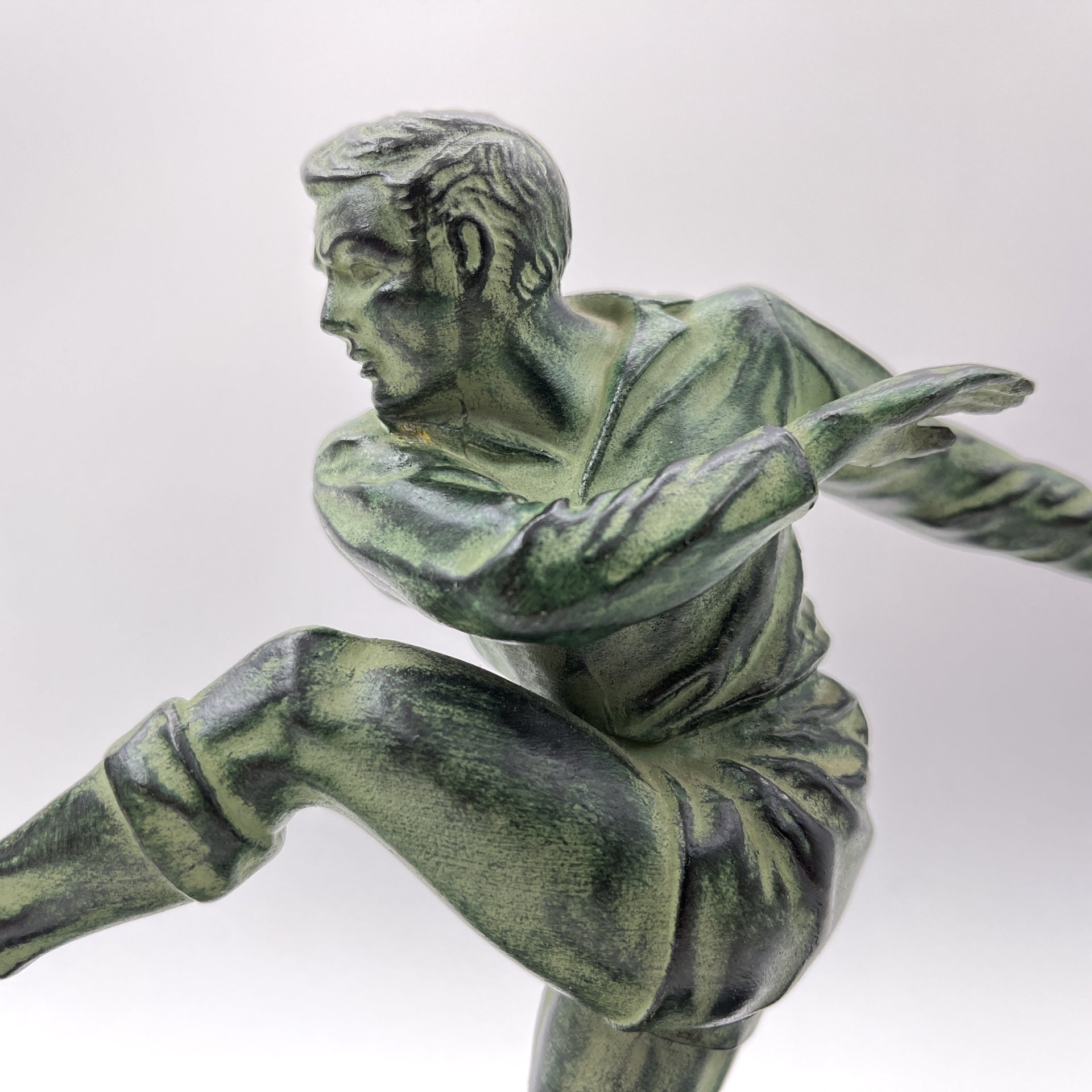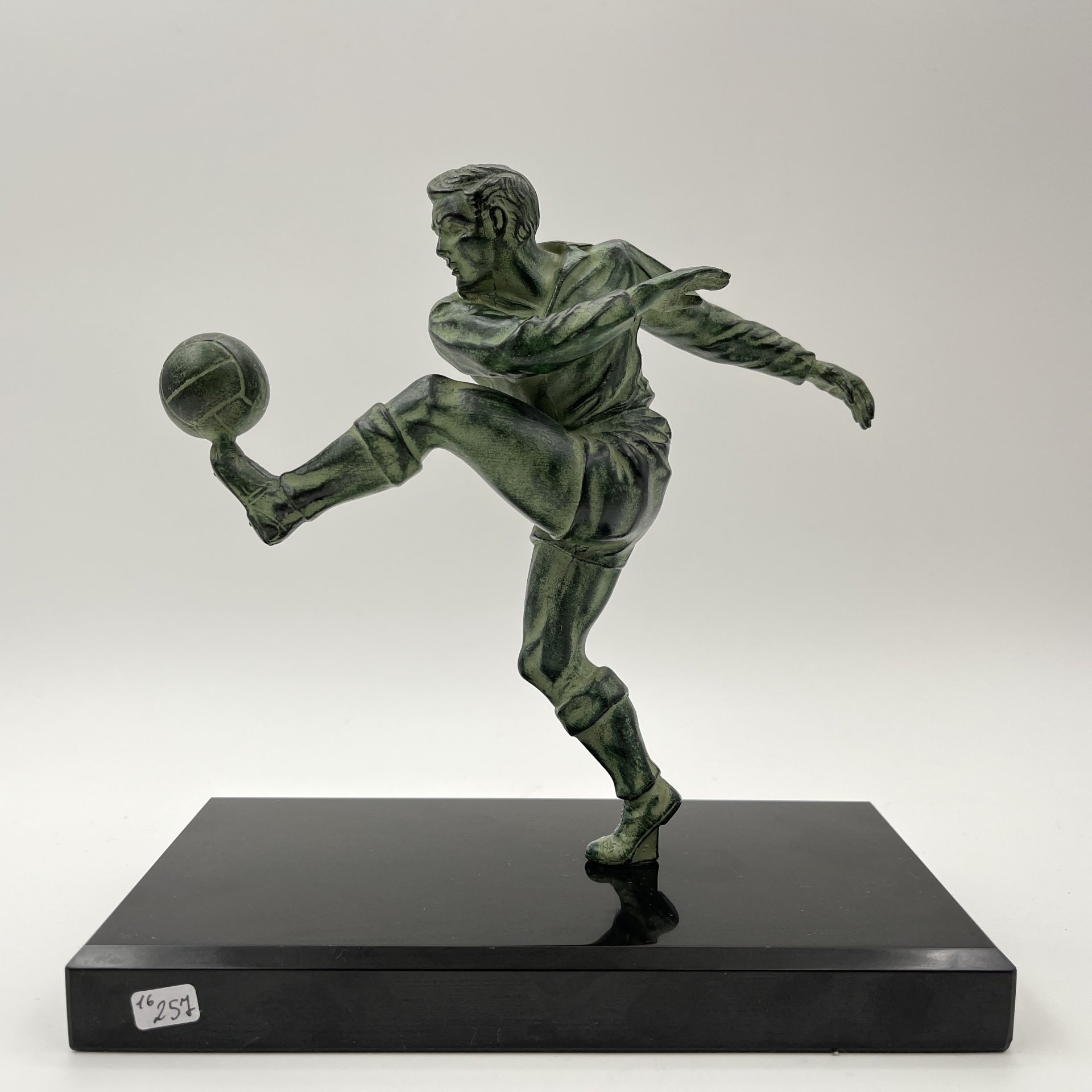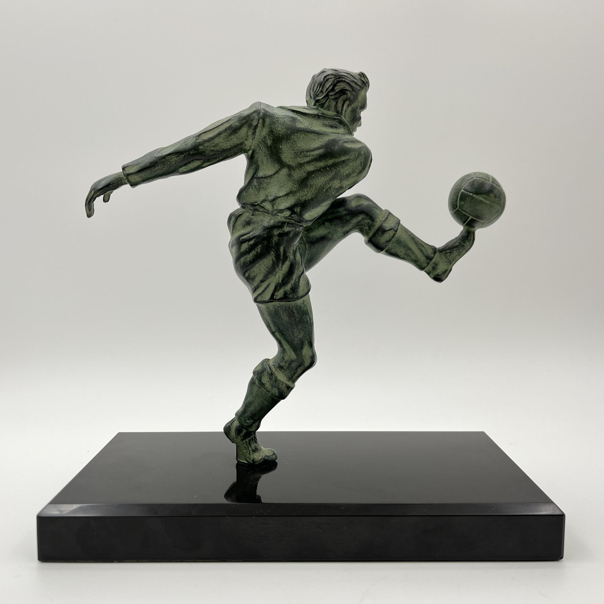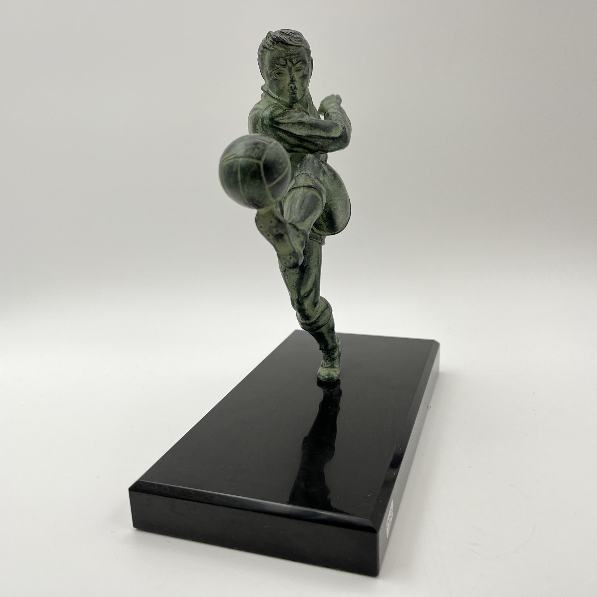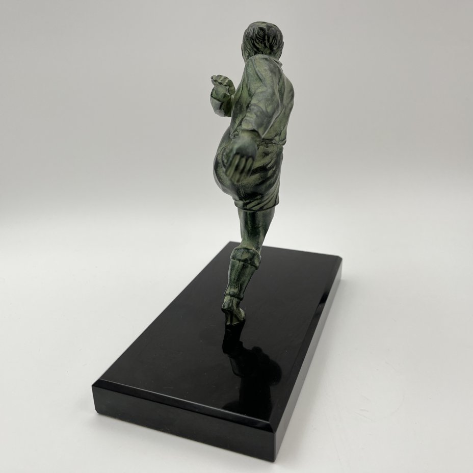 купить Статуэтка в стиле ар-деко "Футболист" на каменном постаменте, металл, литье, патинирование, мрамор, Западная Европа, 1980-2000 гг.