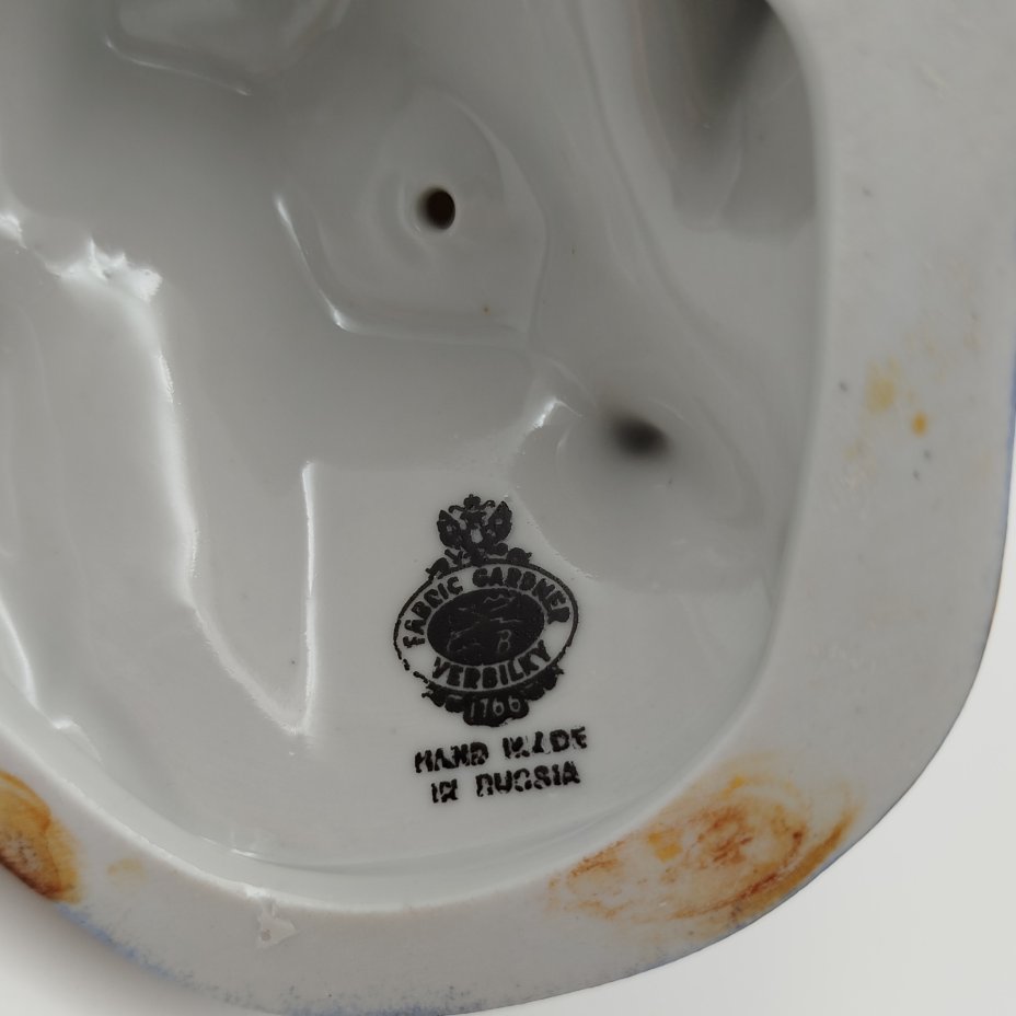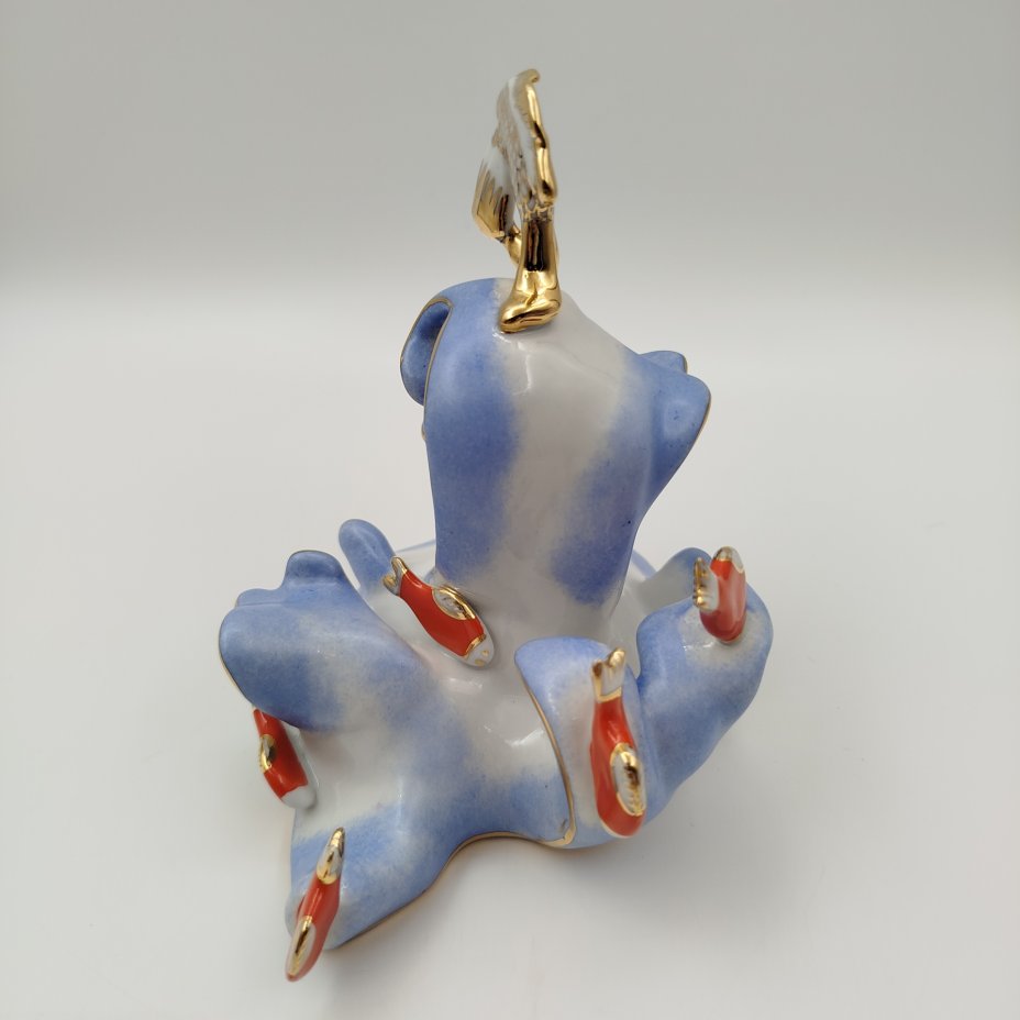 [Авторская] Скульптура "Лев и собачка", авторская подпись Е.М. Гуревич, фаянс, роспись, Гжельский керамический завод, СССР, 1930-1950 гг.