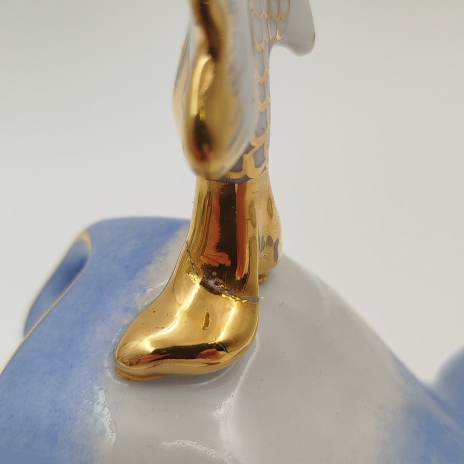Статуэтка «Умирающий лебедь», скульптор Сычёв В.И., фарфор, роспись, люстр, золочение, Ленинградский завод фарфоровых изделий (ЛЗФИ), СССР, 1956-1967 гг.