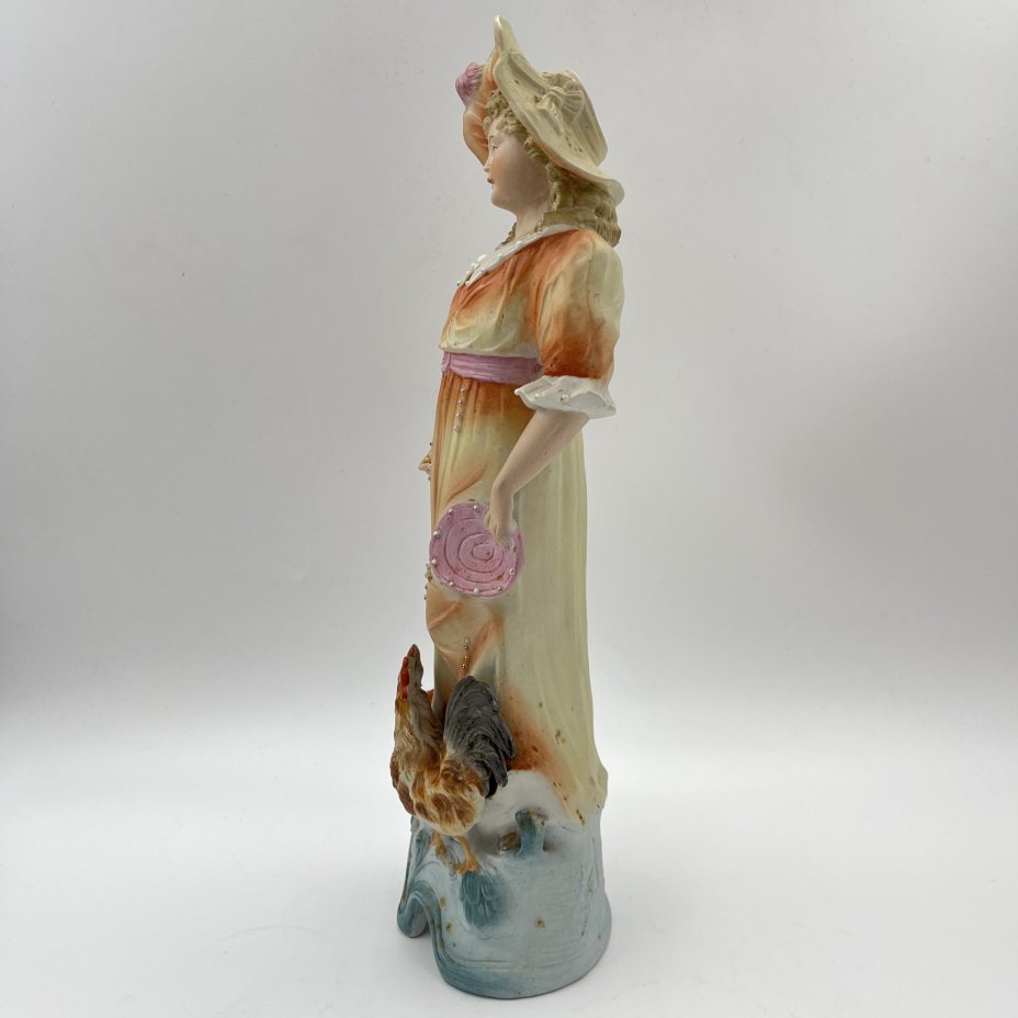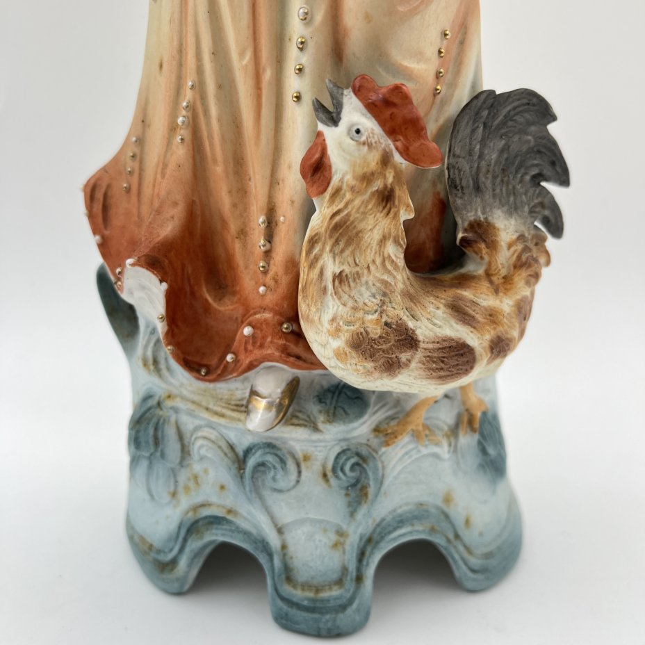 Статуэтка "Девушка с петухом", бисквит, роспись, золочение, Samson, Edmé et Cie, Франция, 1940-1969 гг.