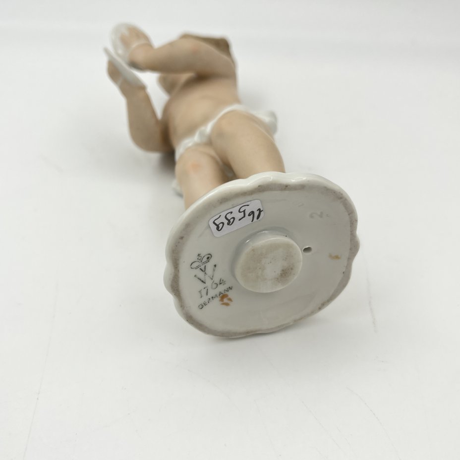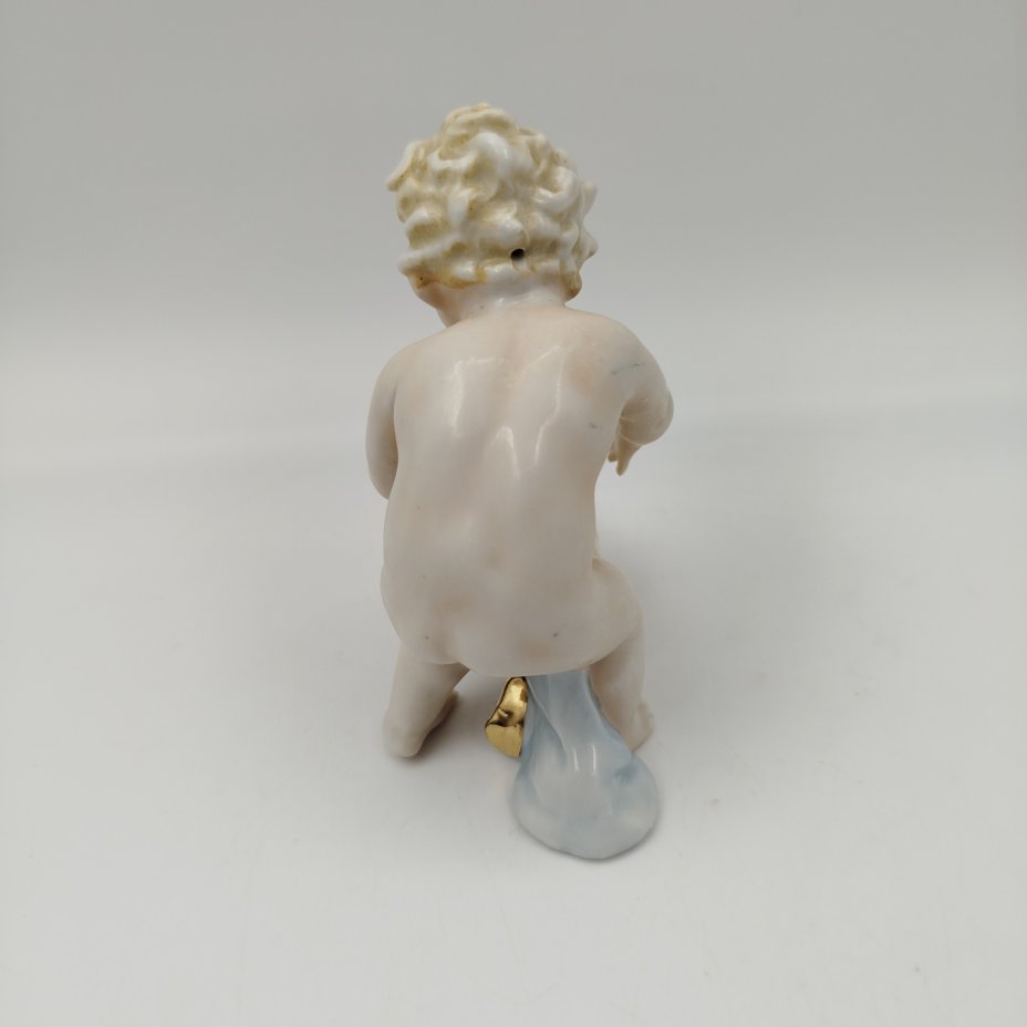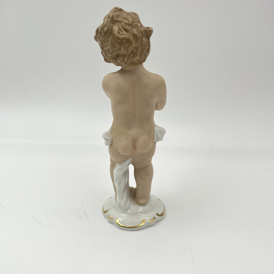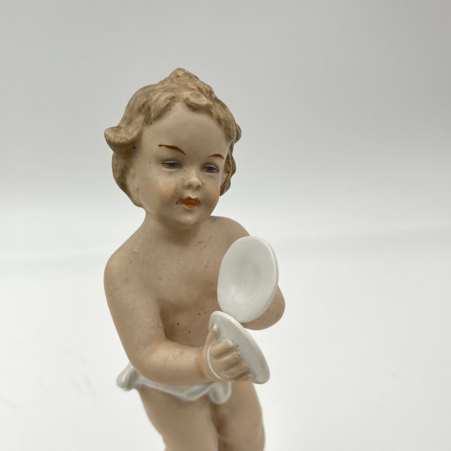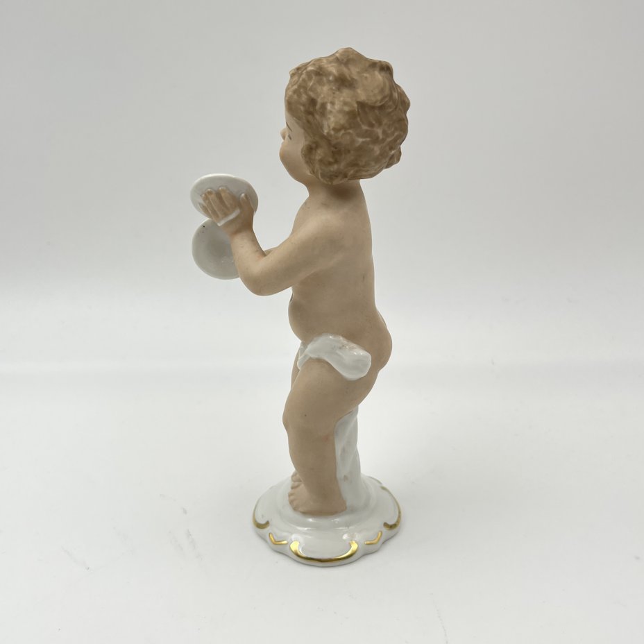 Статуэтка "Путти, играющий на музыкальных тарелках", фарфор, роспись, золочение, Wallendorf, Германия, 1963-1990 гг.