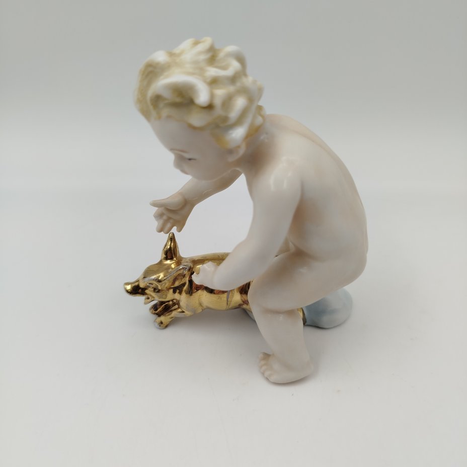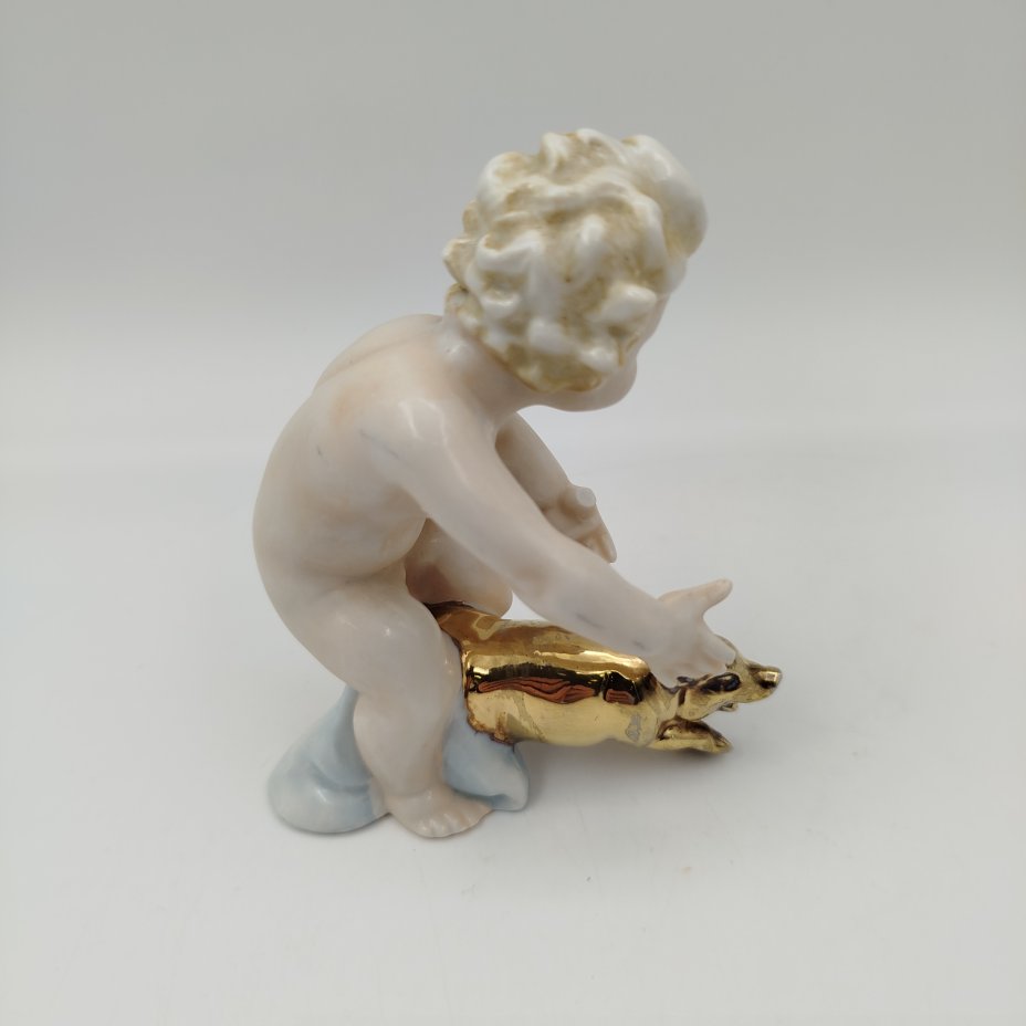 Статуэтка "Путти с поросенком", фарфор, роспись, золочение, Германия, 1950-1970 гг.