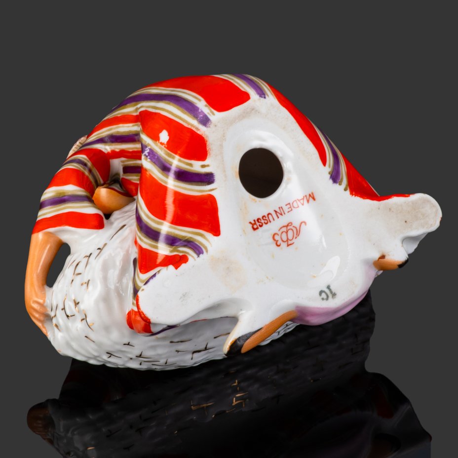 Статуэтка "Снеговик - хоккеист" (копия Хоккейного приза за кубок газеты "Известия"), автор В. Ропов, фарфор, роспись, золочение, Дулевский фарфоровый завод (Дулёво), СССР, 1968-1991 гг.