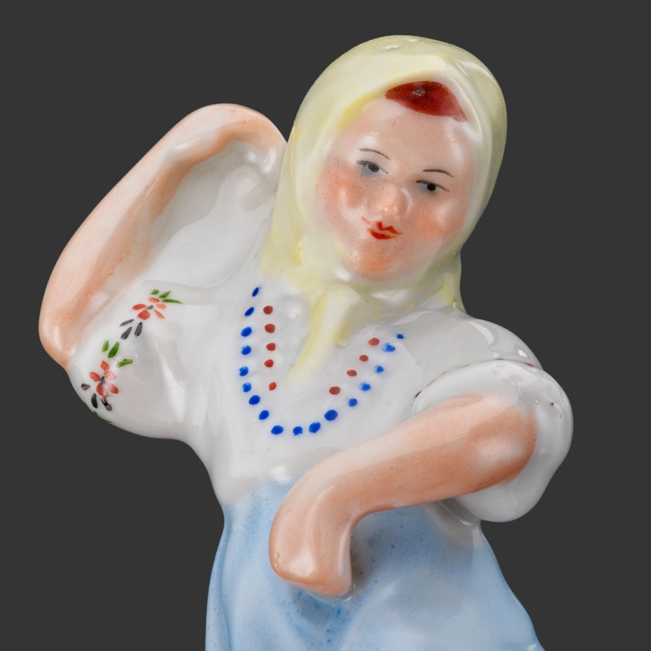 Статуэтка "Дарья" ("Юная плясунья"), скульптор Н. А. Замятина, фарфор, роспись, Городницкий фарфоровый завод, СССР, 1945-1953 гг.