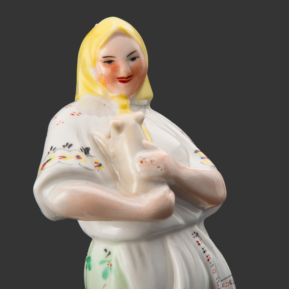 Скульптура "Свинарка", автор О. Ярош, фарфор, роспись, Городницкий фарфоровый завод, СССР, 1939-1944 гг.