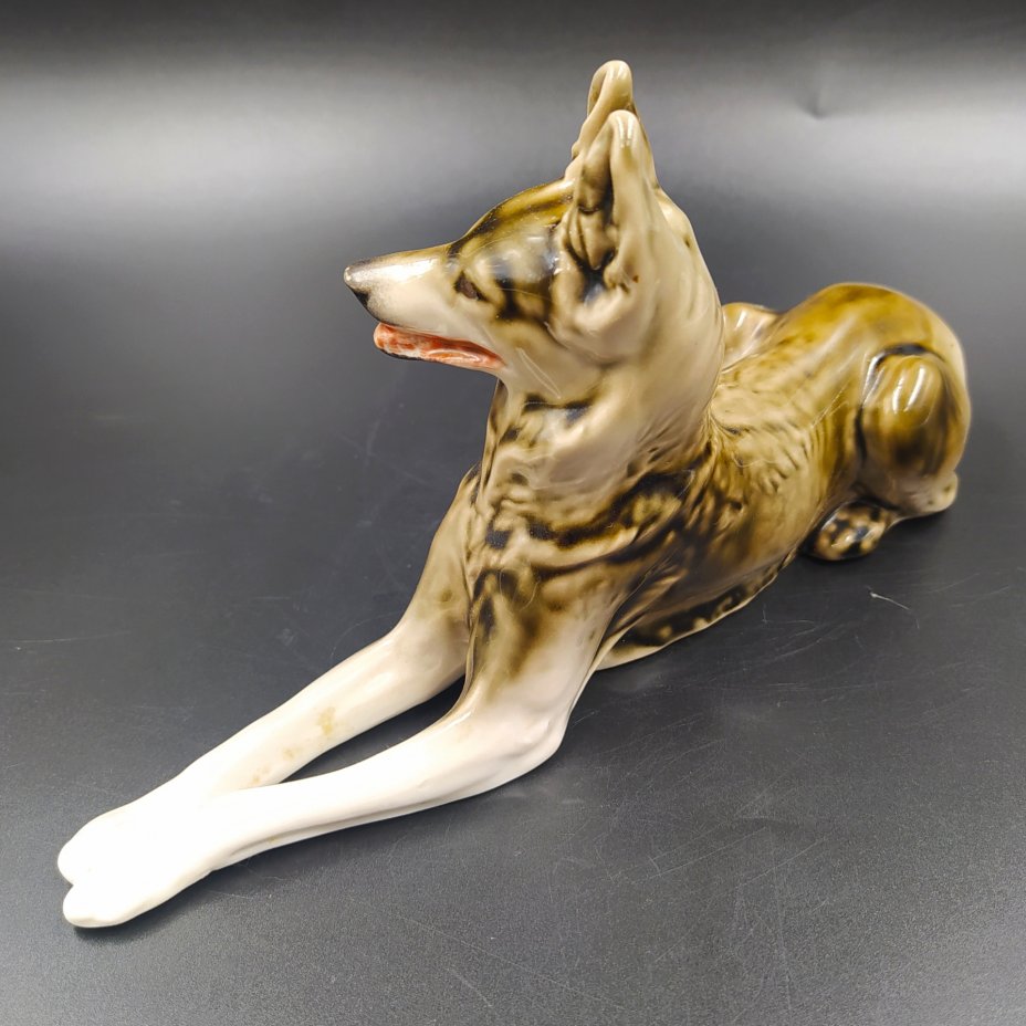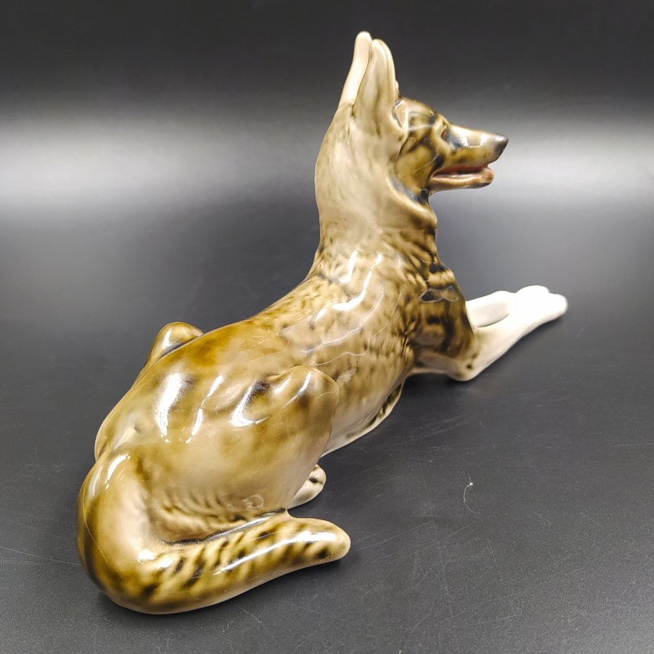 Статуэтка "Немецкая овчарка", автор В.С. Драчинская, фарфор, роспись, Ленинградский фарфоровый завод (ЛФЗ), СССР, 1970-1991 гг.