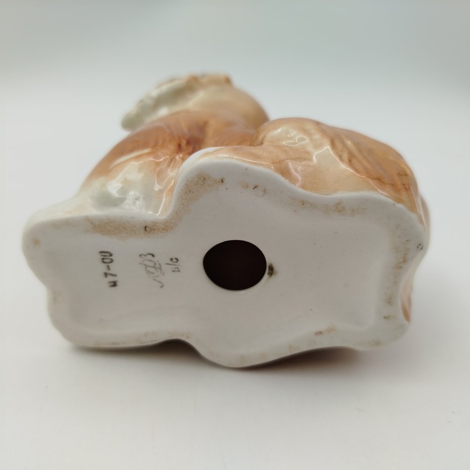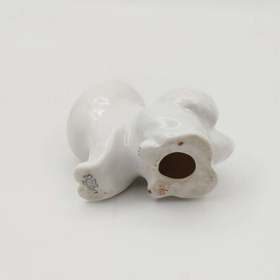 Статуэтка "Медвежонок лежащий", скульптор П. П. Веселов, художник В.М.Жбанов, фарфор, роспись, Ленинградский фарфоровый завод (ЛФЗ), СССР, 1960-1969 гг.