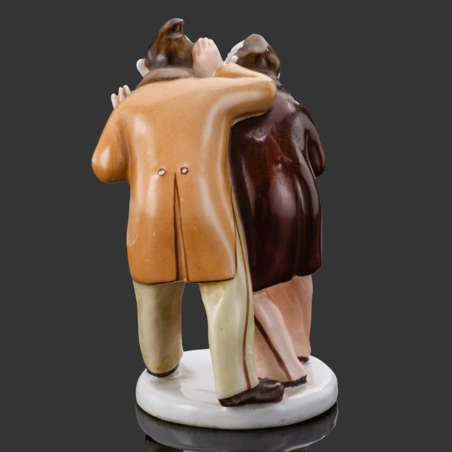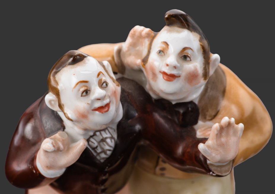 Статуэтка "Бобчинский и Добчинский" из серии "Гоголевские персонажи" по произведению Н. В. Гоголя "Ревизор", Б. Я. Воробьев, И. И. Ризнич, фарфор, роспись, Ленинградский фарфоровый завод (ЛФЗ), СССР, 1950-1960 гг.