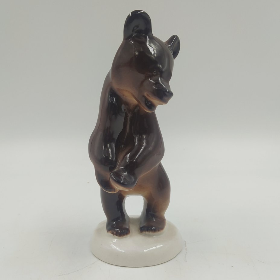 Статуэтка "Медвежонок бурый стоящий", скульптор Б.Я. Воробьев, фарфор, роспись, Ленинградский фарфоровый завод (ЛФЗ), СССР, 1970-1990 гг.