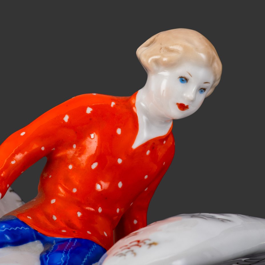 Статуэтка "Утро" (из серии "Счастливое детство"), скульптор Г.С. Столбова, художник Лупанова Е.Н., фарфор, роспись надглазурная, Ленинградский фарфоровый завод (ЛФЗ), СССР, 1950-1960 гг.
