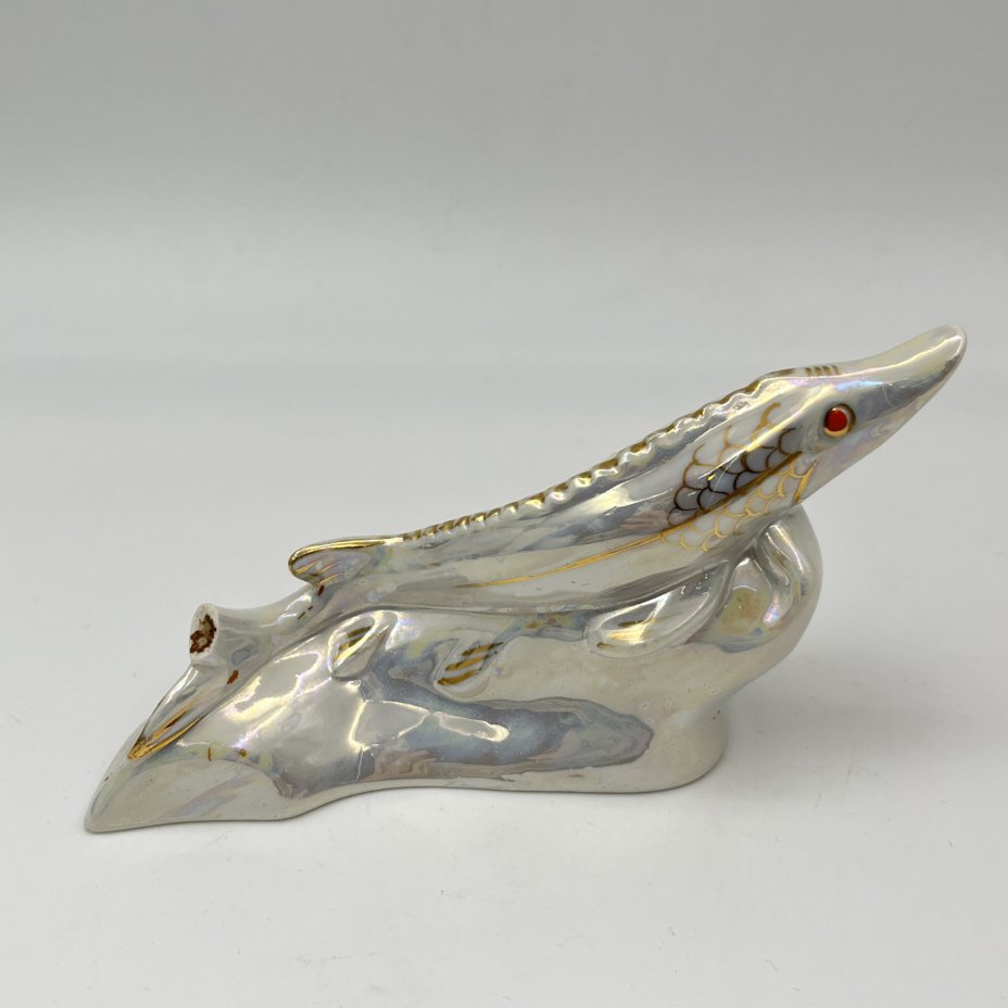 Статуэтка "Осётр", фарфор, люстр, золочение, Дмитровский фарфоровый завод (ДФЗ Вербилки), СССР, 1954-1965 гг.