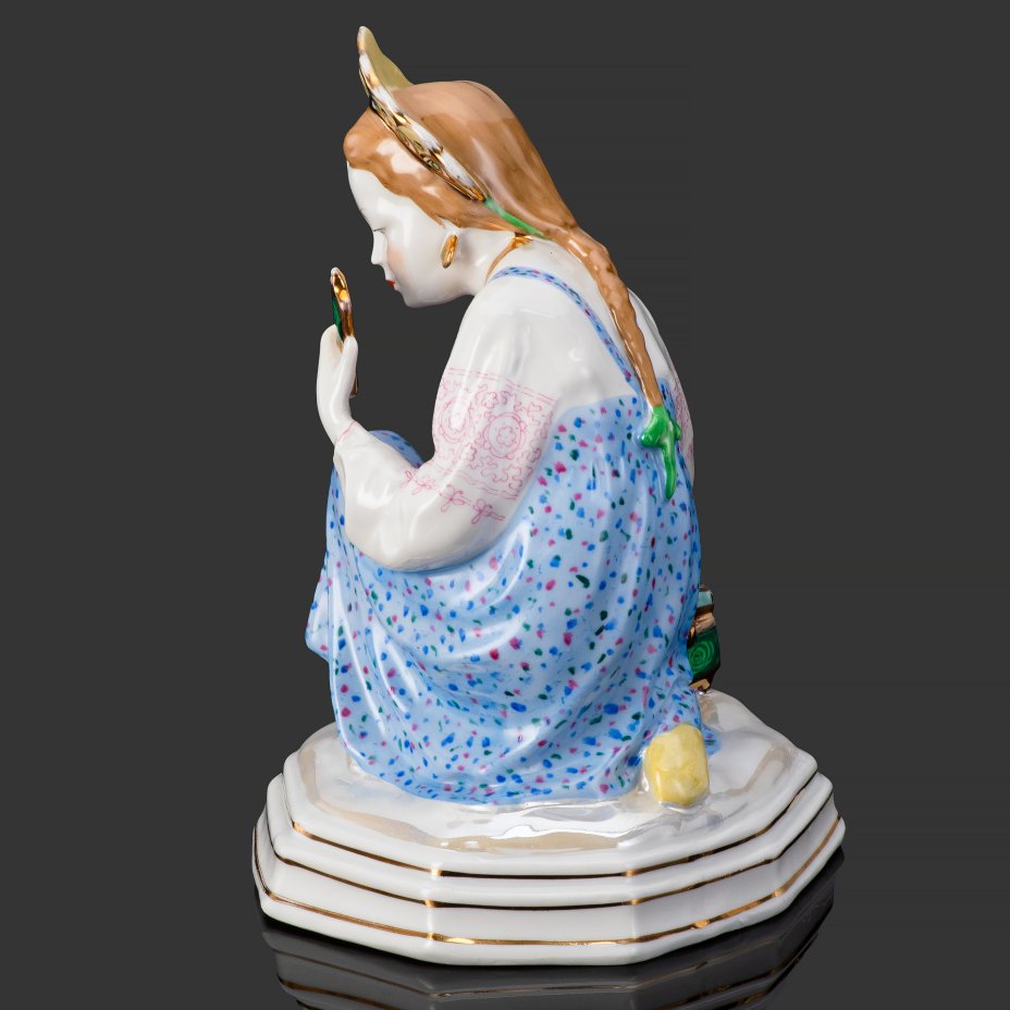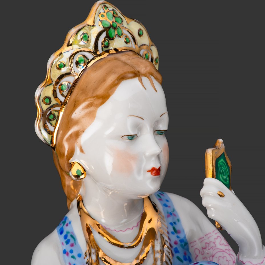 Статуэтка "Малахитовая шкатулка" ("Танюшка и тятино подаренье"), скульптор О.М. Богданова, фарфор, роспись, золочение, люстр, Дулевский фарфоровый завод (Дулёво), СССР, 1957 г.