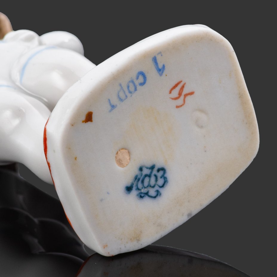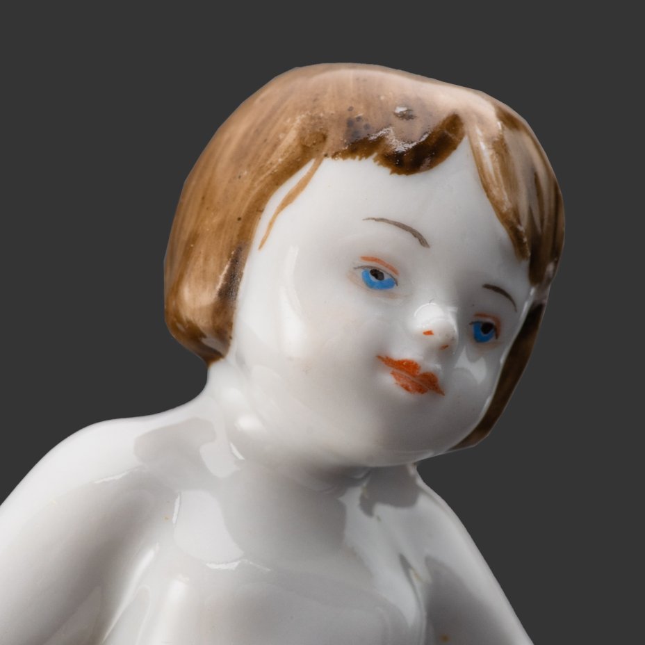 Малыш -лыжник в пушистом свитере, фарфор, роспись, золочение, люстр, Европа, 1920-1950 гг.