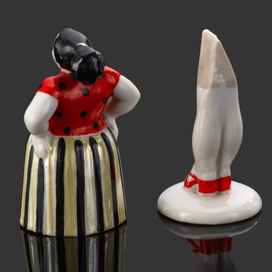 Статуэтка "Сплетница" ("Склочница") из скульптурной группы "Разговор", авторы А.В. Дегтярев и Л.Н. Сморгон, фарфор, роспись, люстр, золочение, Ленинградский завод фарфоровых изделий (ЛЗФИ), СССР, 1956-1967 гг.