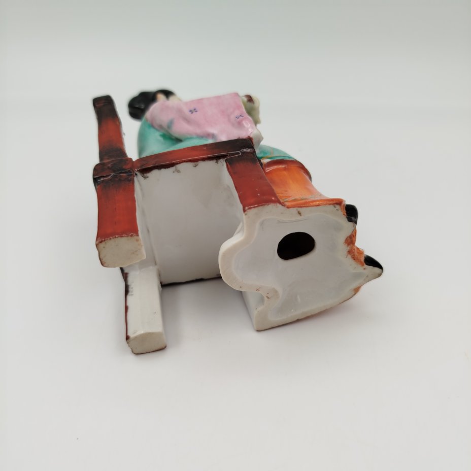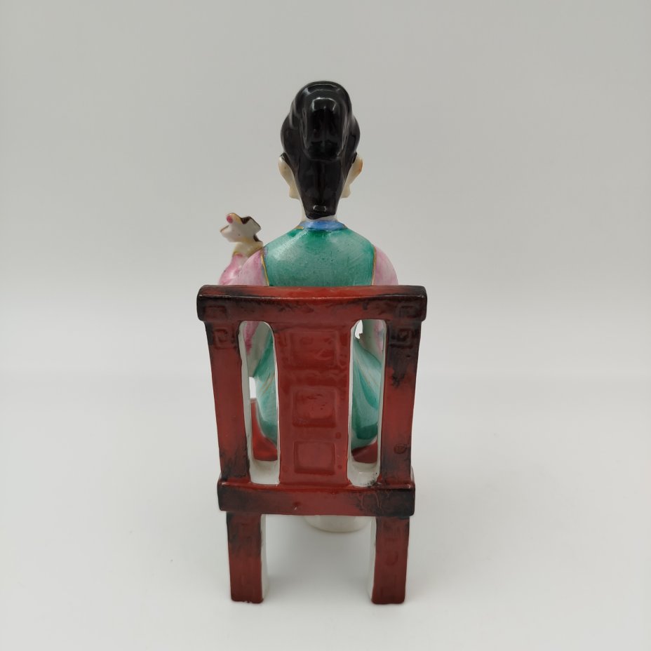 Статуэтка "Девушка, увлеченная традиционной игрой", Shiwan Wucai, керамика, глазурь, роспись, Китай, 1980-2000 гг.