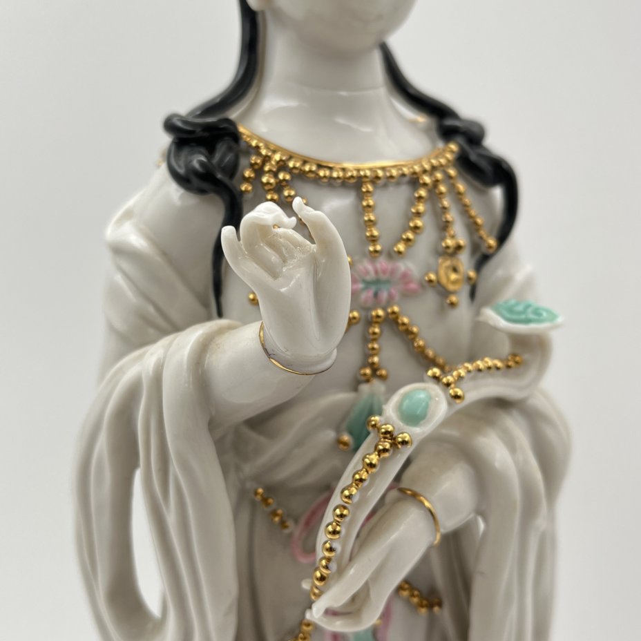 Статуэтка "Богиня милосердия Бодхисаттва Гуань Инь" (Гуаньинь), фарфор, роспись, золочение, Китай, 1970-1990 гг.