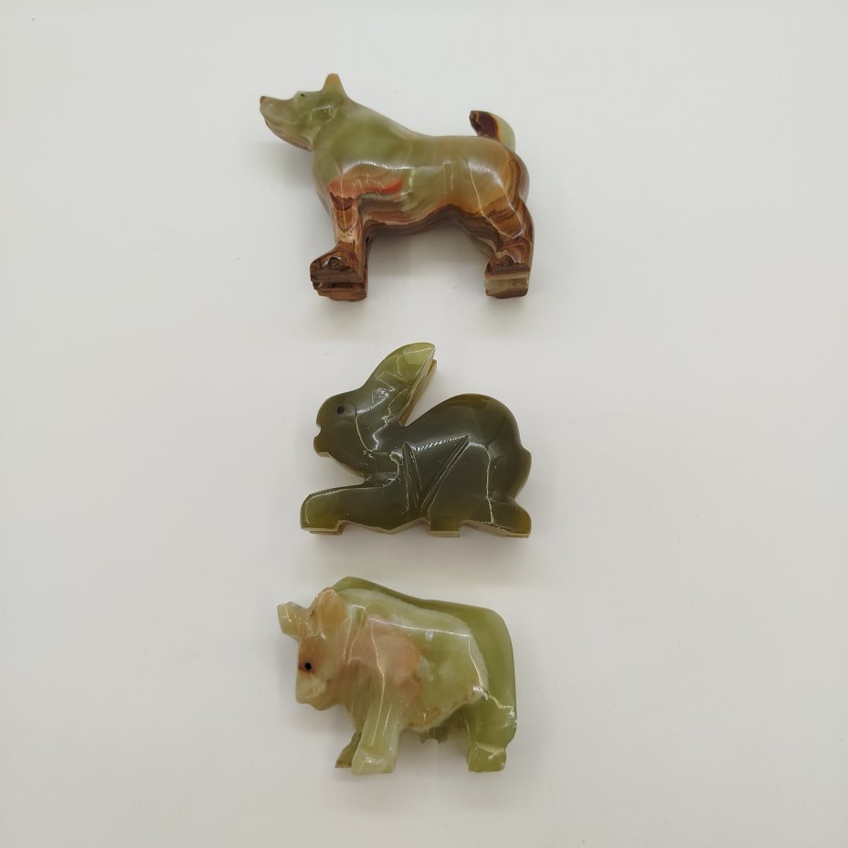 Набор из трех статуэток в виде животных китайского гороскопа(кролик, бык, собака), натуральный камень, резьба, Азия, 2000-2010 гг.