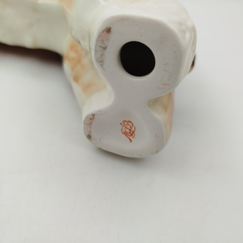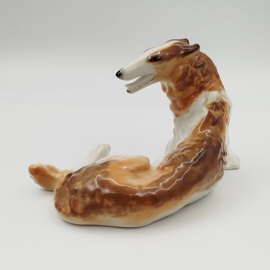 Статуэтка "Борзая", автор формы Б.Я. Воробьев, автор росписи И.И. Ризнич, фарфор, роспись, Ленинградский фарфоровый завод (ЛФЗ), СССР, 1970-1990 гг.
