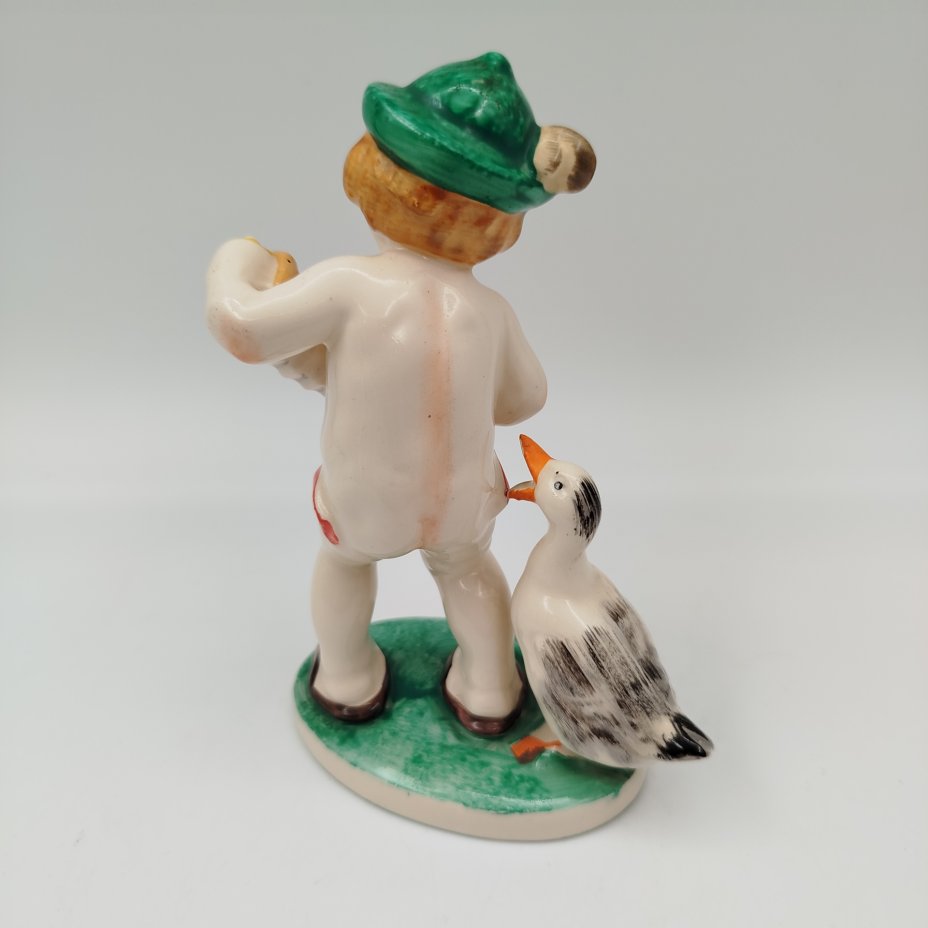 Статуэтка "Мальчик с гусем", фаянс, роспись, Hertwig & Co., Германия, 1941-1958 гг.