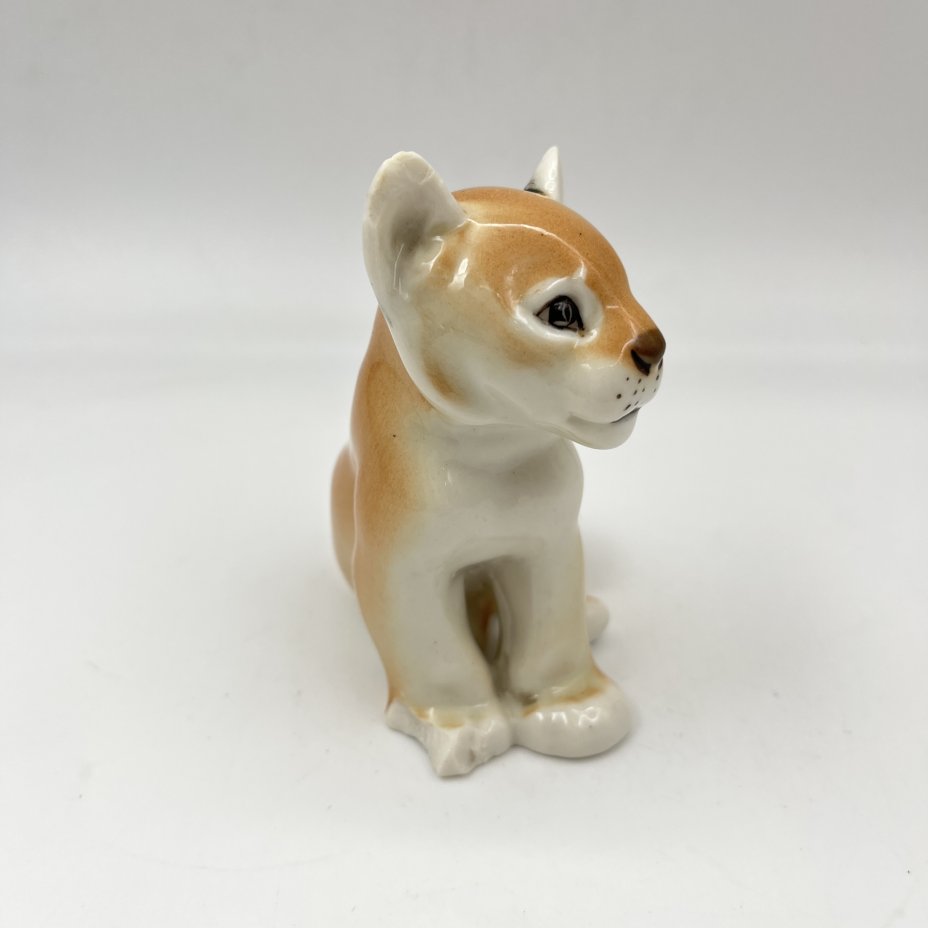 Статуэтка "Львенок сидящий", скульптор Воробьев Б.Я., фарфор, роспись, Ленинградский фарфоровый завод (ЛФЗ), СССР, 1970-1990 гг.