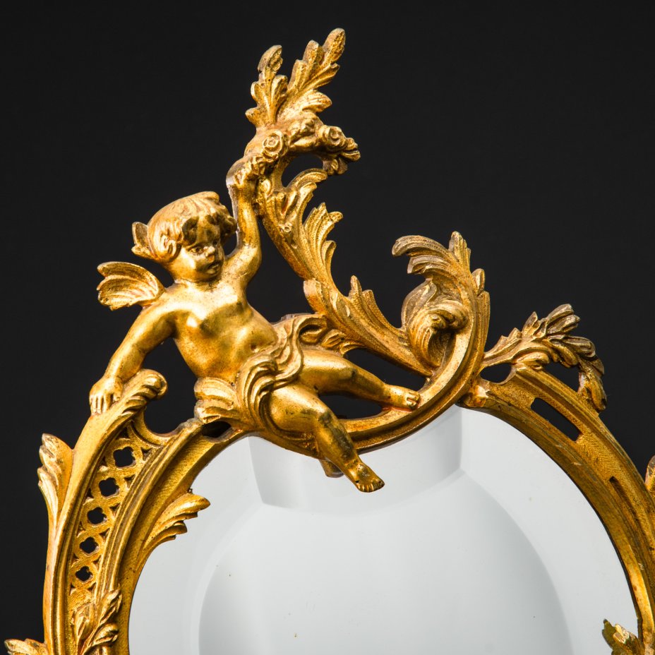 Зеркало в раме настольное, декорированное рокайльными элементами, (крупное), металл, бронзирование, зеркальное полотно, Западная Европа, 1980-2000 гг.