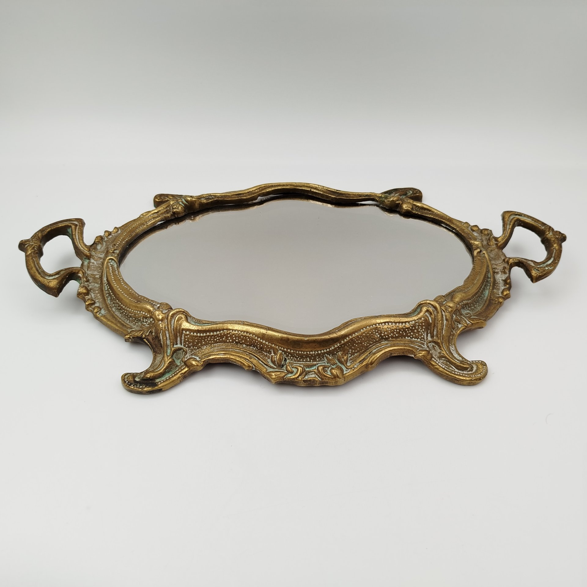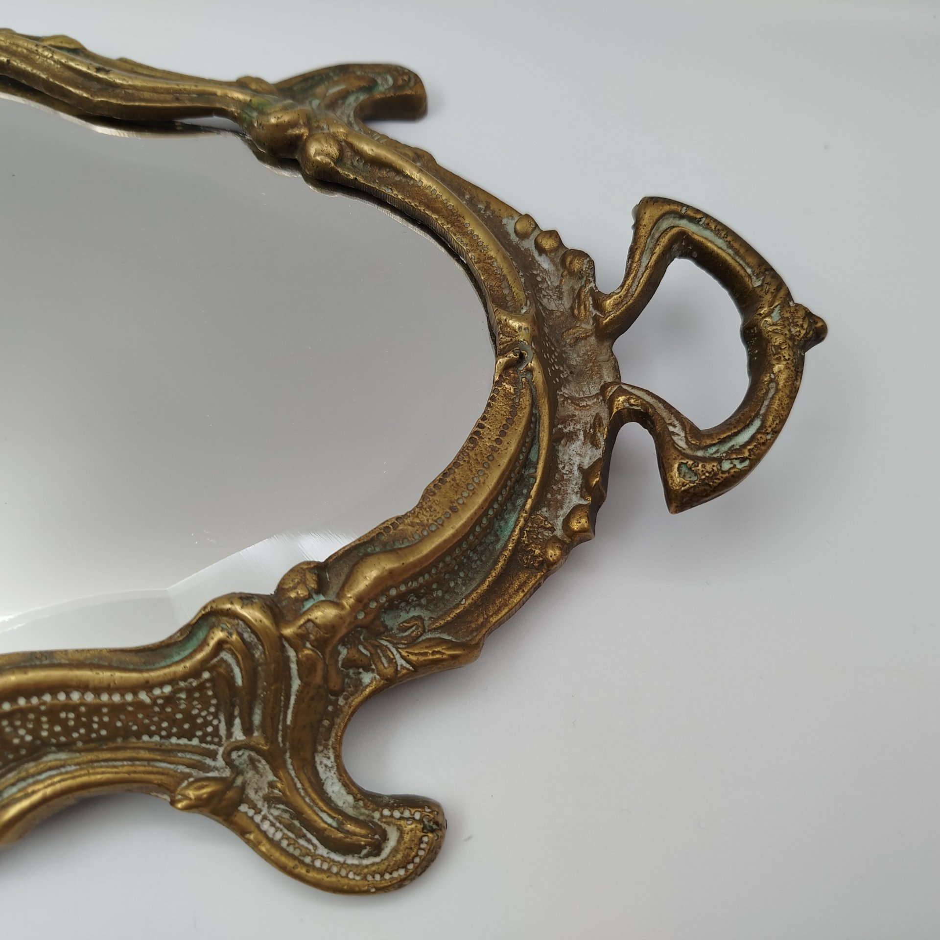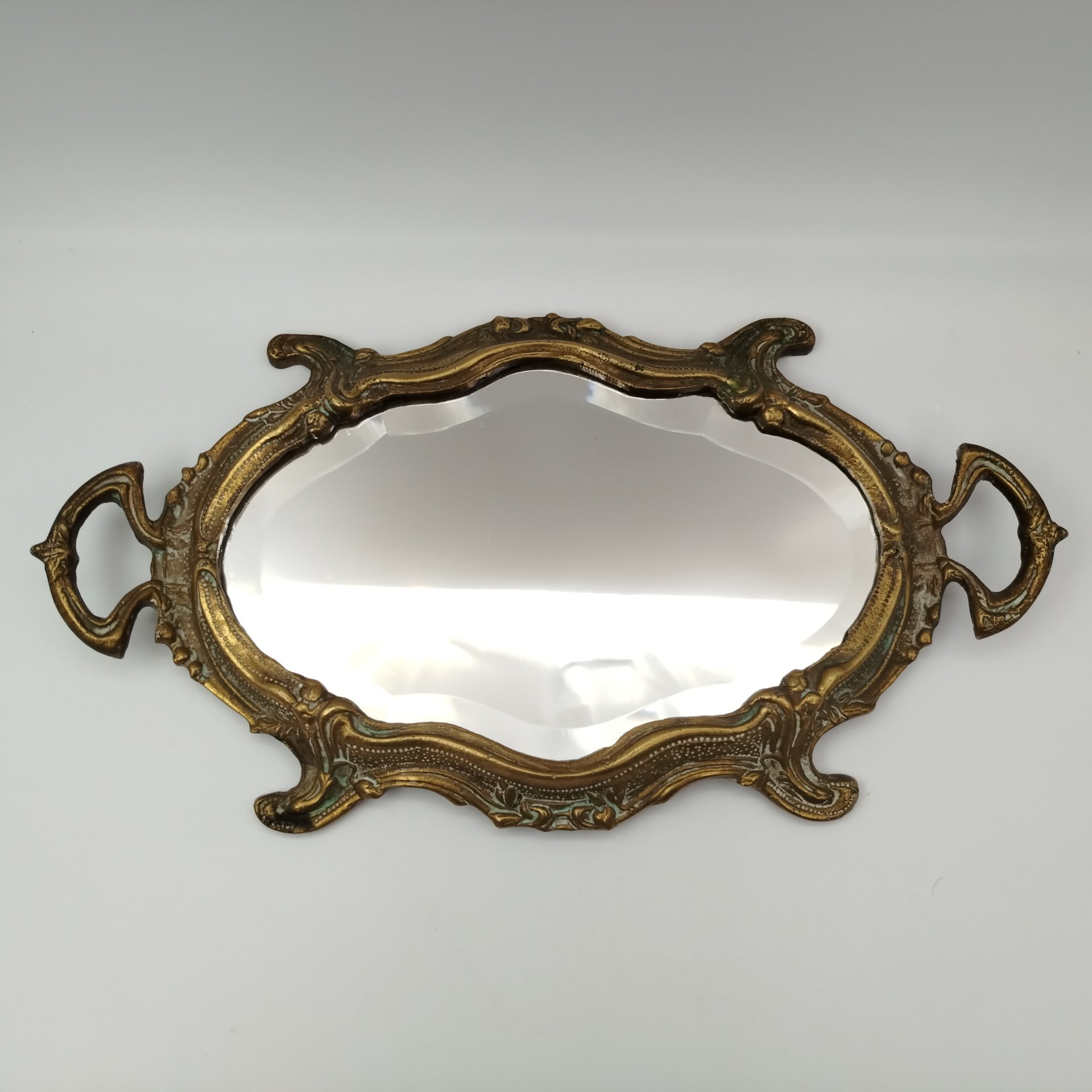 Зеркало для дамского столика, декорированное рокайльными элементами, (крупное), металл, бронзирование, патинирование, зеркальное полотно, Западная Европа, 1980-2000 гг.