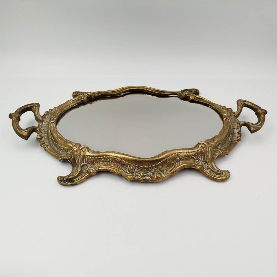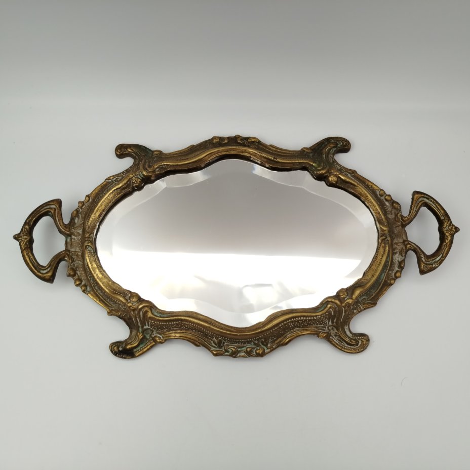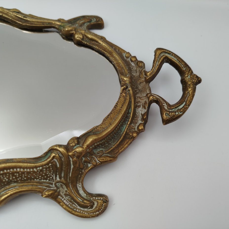 Зеркало в раме настольное, декорированное рокайльными элементами, (крупное), металл, бронзирование, зеркальное полотно, Западная Европа, 1980-2000 гг.