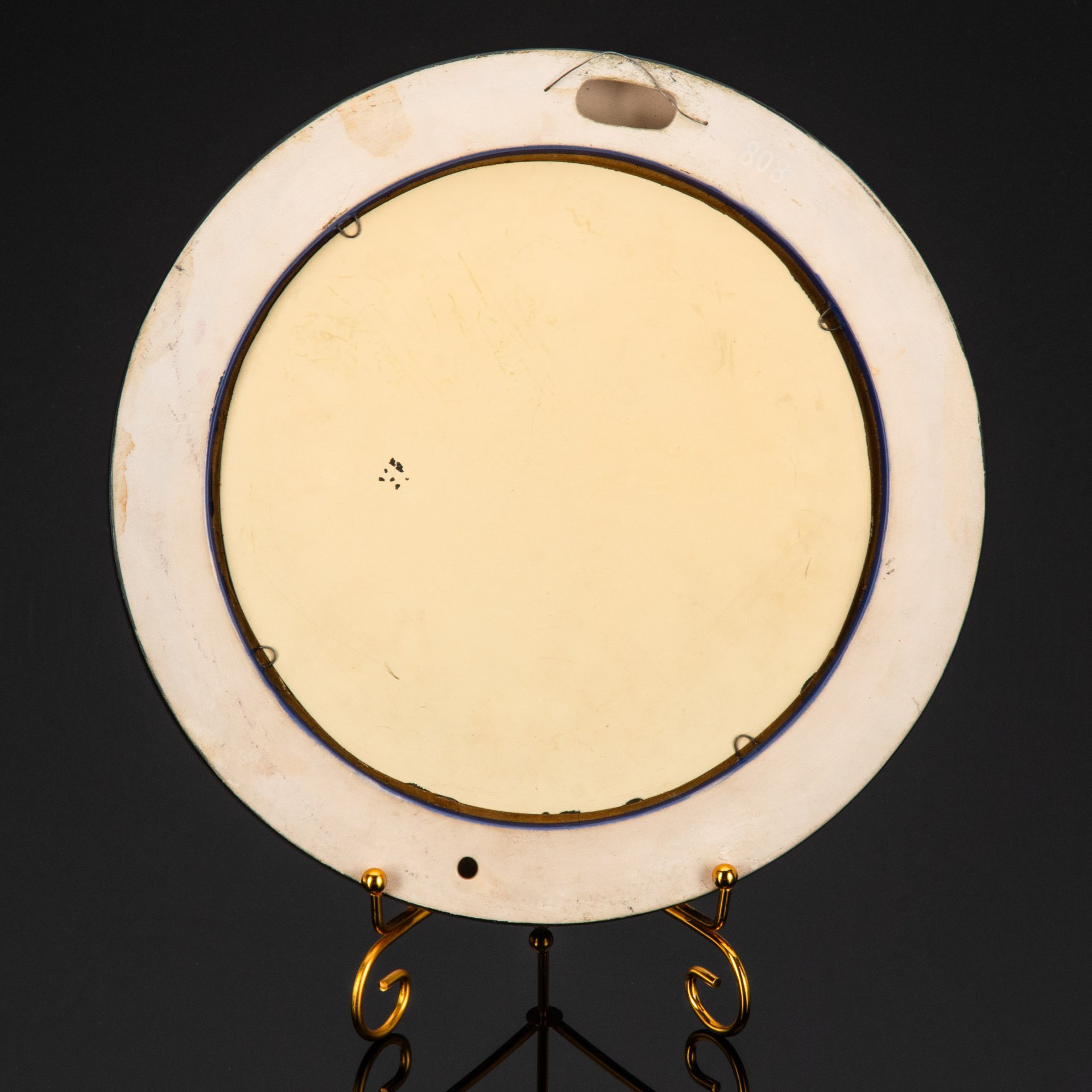 Зеркало овальной формы, украшенное охотничьими сценами в медальонах, латунь, зеркало, золочение, камень, Западная Европа, 1920-1950 гг.