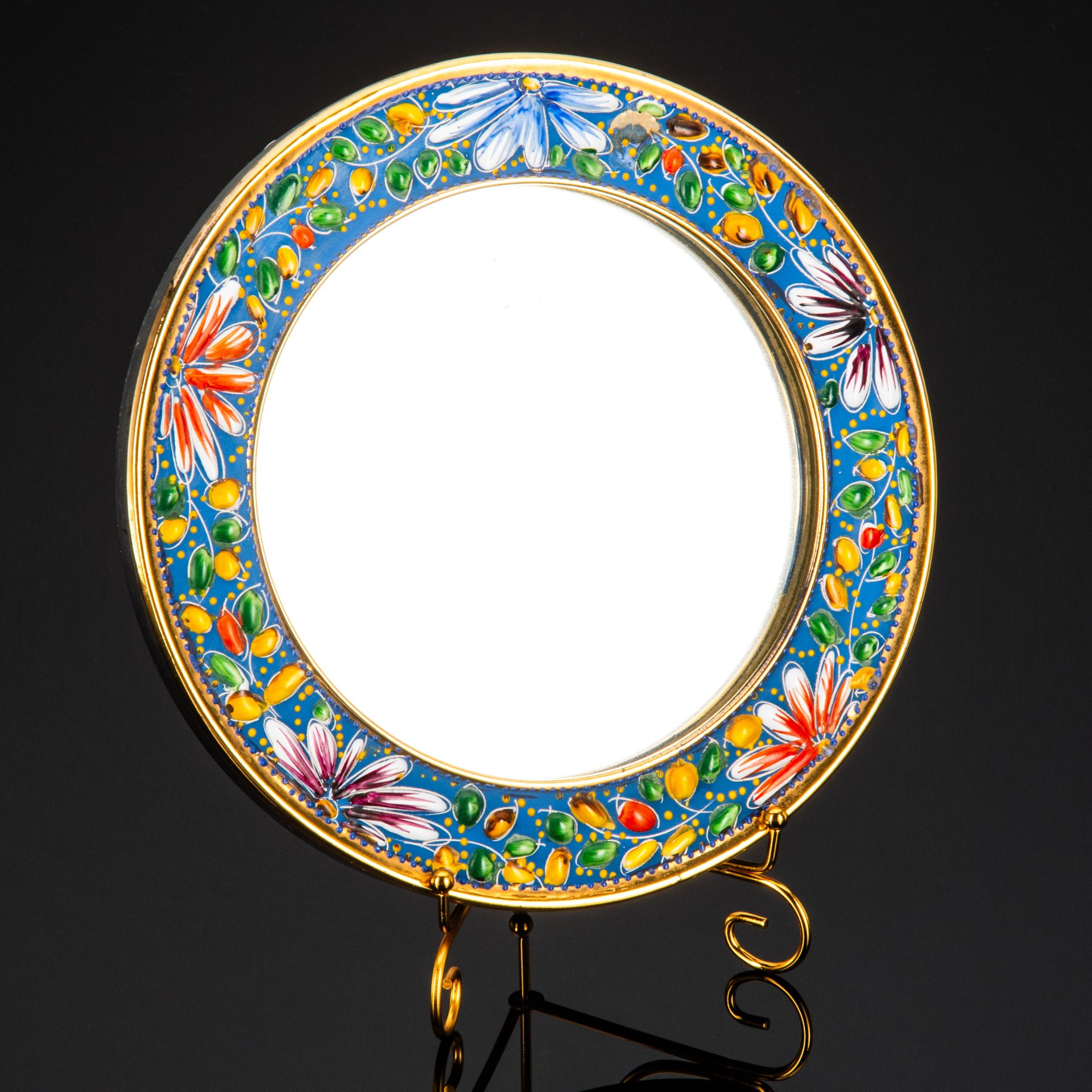 Настольное зеркало круглой формы, украшенное ажурным декором, металл, зеркало, Западная Европа, 1960-1980 гг.